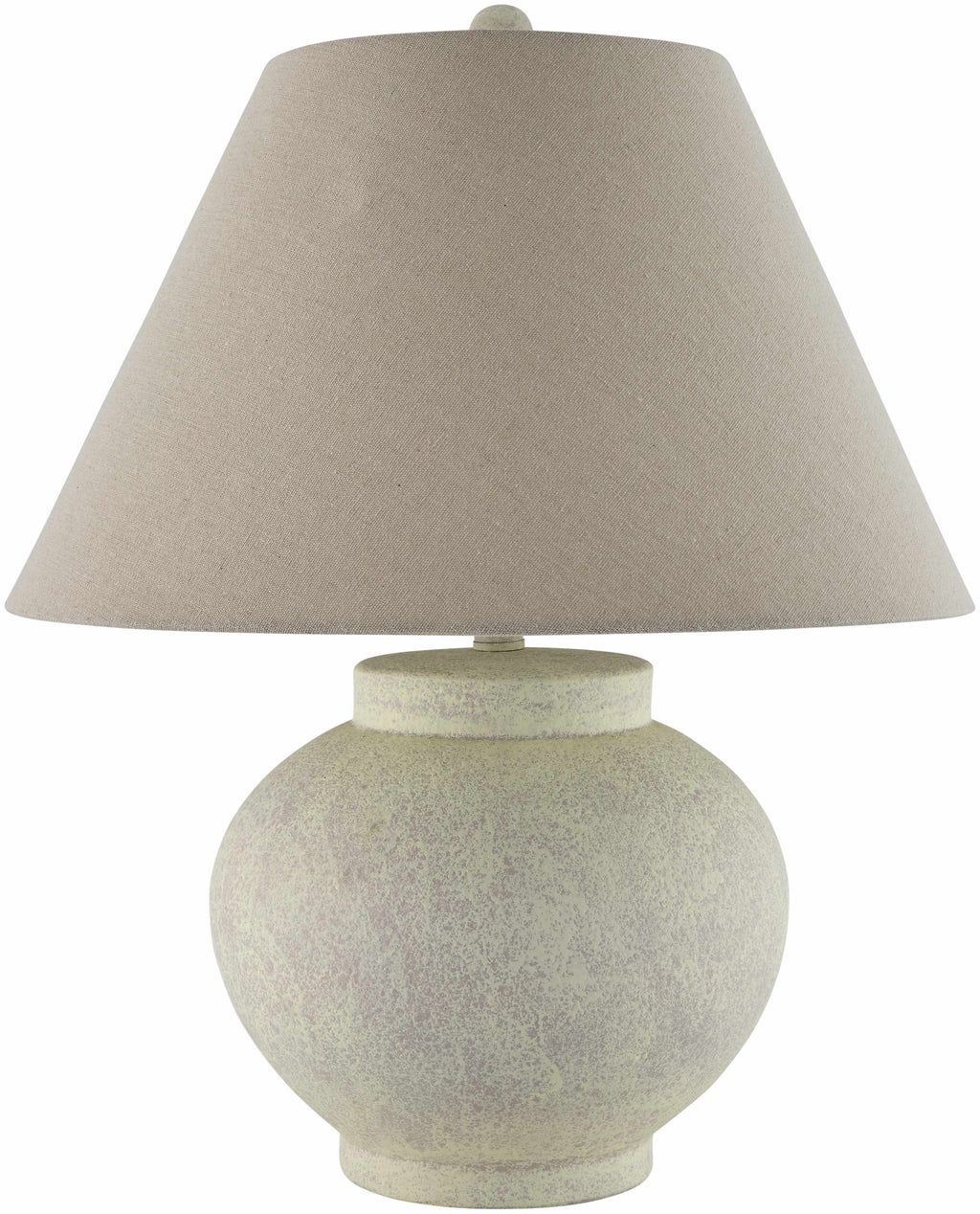 Material: Body: Ceramic / Shade (Outside): Linen / Finial: Iron |