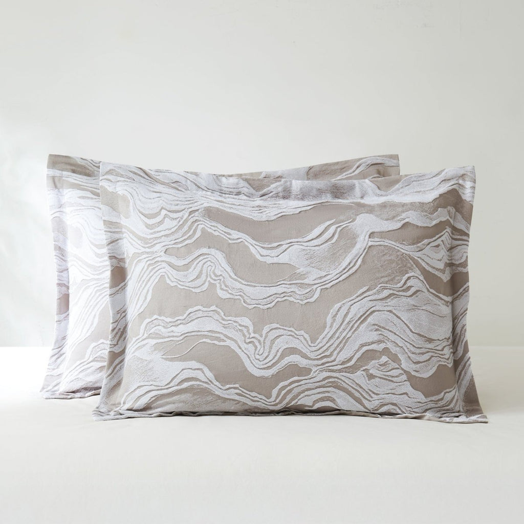 Nature’s rhythm and regenerative beauty inspired the Cascade Wave Comforter Set. The woven jacquard design features a three-dimensional wave pattern that adds texture, depth, and movement to your bedroom — an echo of ever-changing landscapes in the natural world.