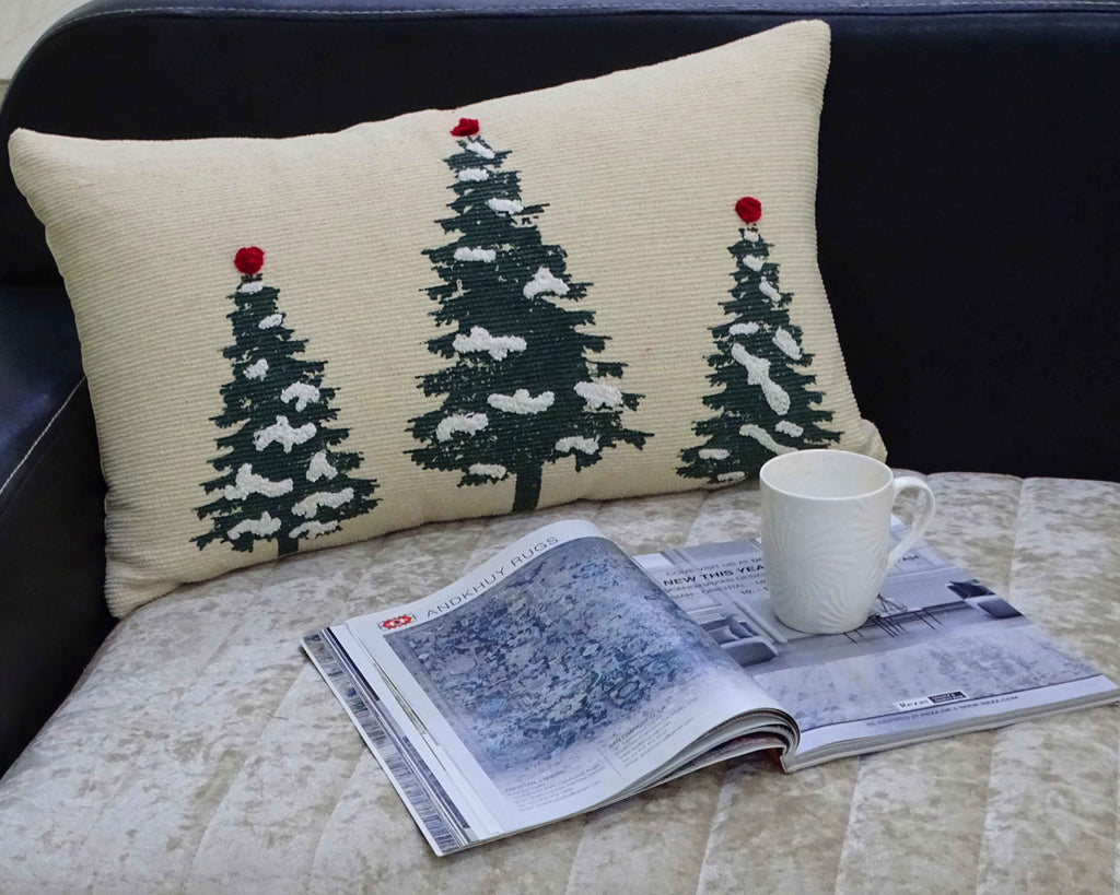 Vibhsa Throw Pillows make your Home more welcoming and loving. Great decorative couch pillows for Holiday Seasons and good fit for modern and classic Home decor styles. Hand woven or embroidered sofa pillow gives an elegant look to your furniture, and our collection keep up cohesive Contemporary Looks to your home.14" x 24" accent Throw Pillow for sofa. Christmas Trees to give an elegance to your sofa. Includes: 1 Decorative Pillow with high quality insert. Screen Print with looped embroidery and added Pom pom detail. Indoor Use Only. Spot Clean. Back of the pillow has solid color with no pattern. Zipper Closure for easy removal of insert.