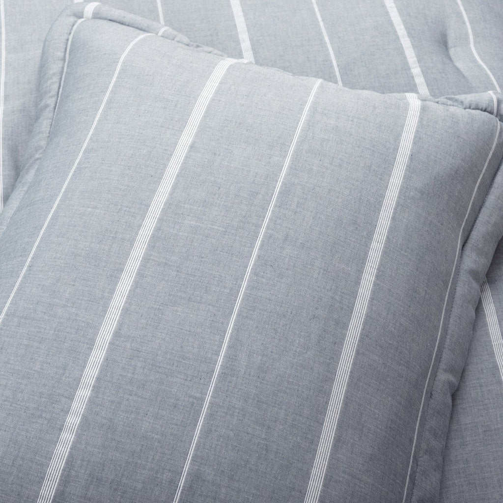 Designed with a classic striped pattern, this woven yarn dyed Classic Farmhouse Chalk Stripe 3 Piece Comforter Set is just what you are missing for your layered bedding look. The thin white lines resemble a chalk stripe design on a blue background.