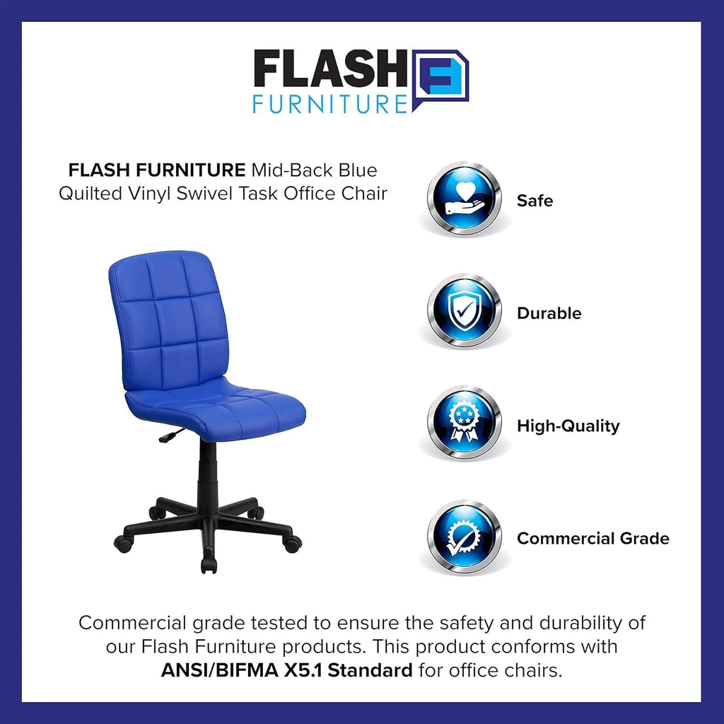 Upgrade your workspace with a chair that blends professional style and all-day comfort. The Clayton Mid-Back Blue Quilted Vinyl Swivel Task Chair adds a touch of sophistication to any home office, dorm room, or reception area while supporting you through long workdays.
