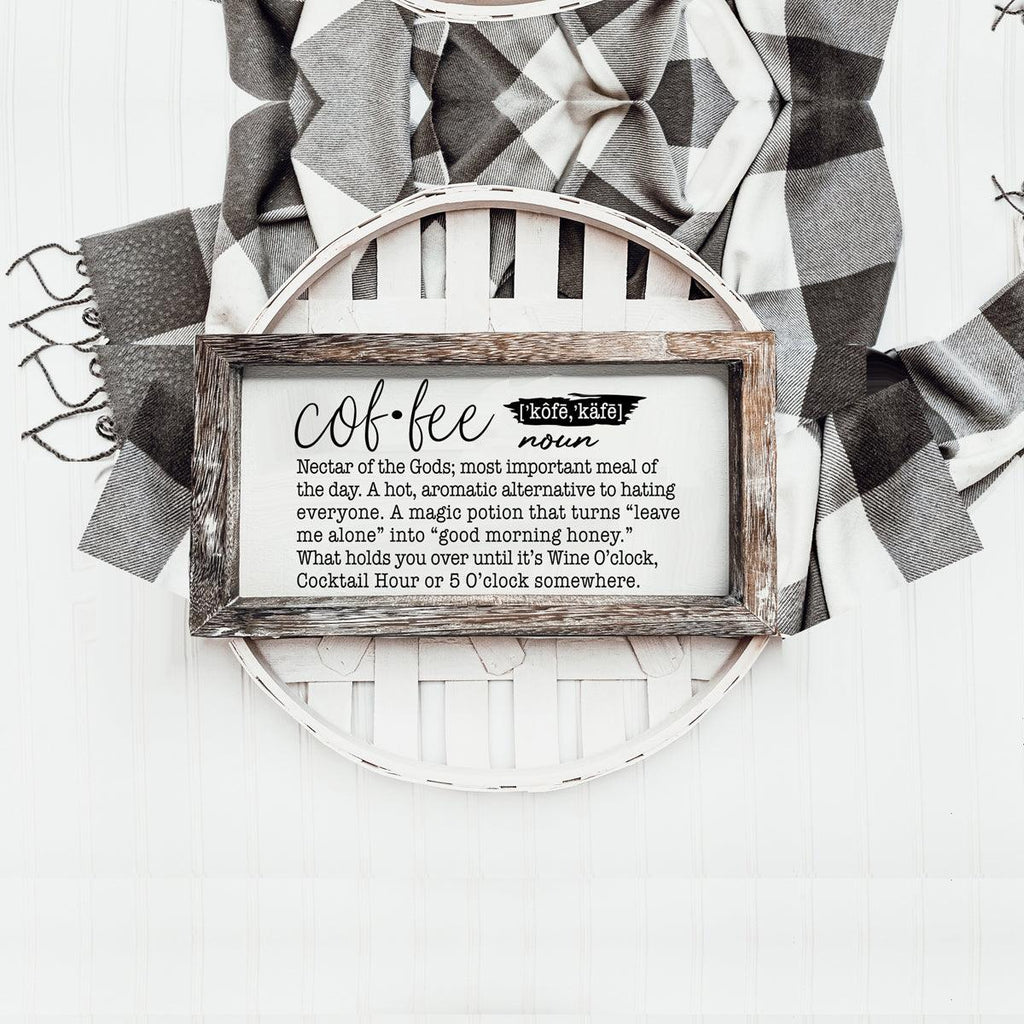 This humorous Coffee Definition Sign is an excellent choice for Coffee Bar Decor, crafted from quality wooden materials. With a scientific, formal, and professional tone from Gia Roma, this sign provides accurate facts and personal expertise on what coffee is and how it should be defined.