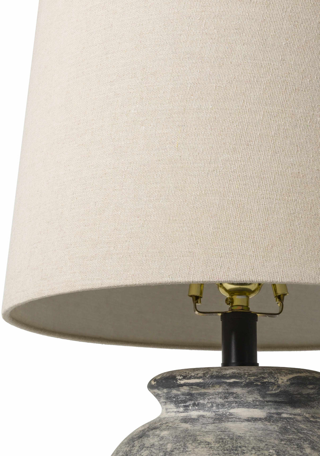 Material: Body: Ceramic,Shade (Outside): Linen,Shade (Inside): Polyester,Finial: Iron |
