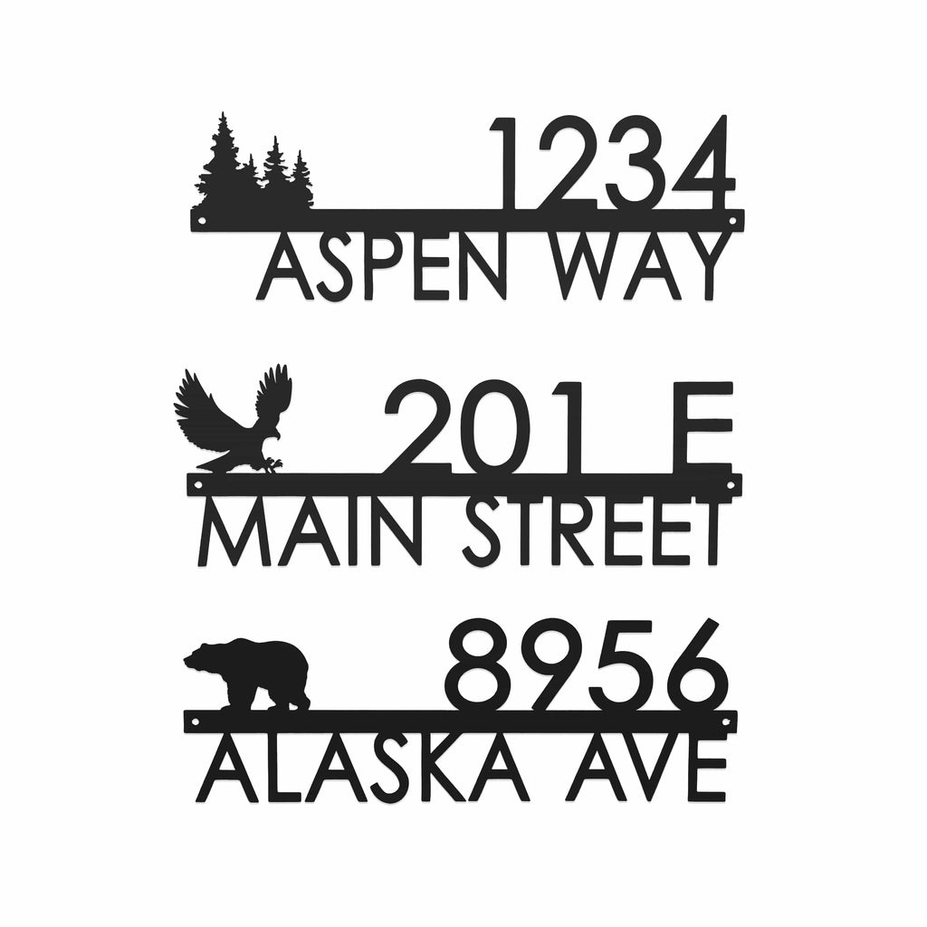 Elevate the look of your home with our customizable metal address plaques, designed to seamlessly blend form and function for any home. As a modern solution to traditional house signs, our address signs for house options allow for an infusion of your personality right at your doorstep. Choose from a variety of themes—Barn, Bear, Eagle, Horse, Hummingbird, Moose, Palm Tree, Pine Tree, Tree—to perfectly complement your exterior. Our plaques offer not just a decoration but also a definitive statement. These custom address signs for houses are crafted from high-quality metal, ensuring they stand the test of time. You have the freedom to personalize the top line with up to 9 characters and the bottom line with up to 12 characters. Customize it further with your choice of three different sizes: 12", 15", or 18". When it comes to durability, we've got you covered. Opt for our rust-resistant powder-coated finishes in black, silver, or white to guarantee that your custom metal address sign remains as striking as the day you first mounted it. These finishes make our metal address plaques for house options not only stylish but long-lasting as well. What sets our product apart is the meticulous craftsmanship involved in creating each custom house number sign. You’re not just getting an address sign plaque; you’re investing in a piece of art that’s as unique as your home. From house address signs modern designs to traditional aesthetics, our plaques can be integrated into various architectural styles, thus making them the perfect personalized house name plaques for any home. Whether you're in the market for modern home address plaques, personalized address plaques for house or metal house number plaques with numbers, our product offers an unparalleled mix of quality and customization.