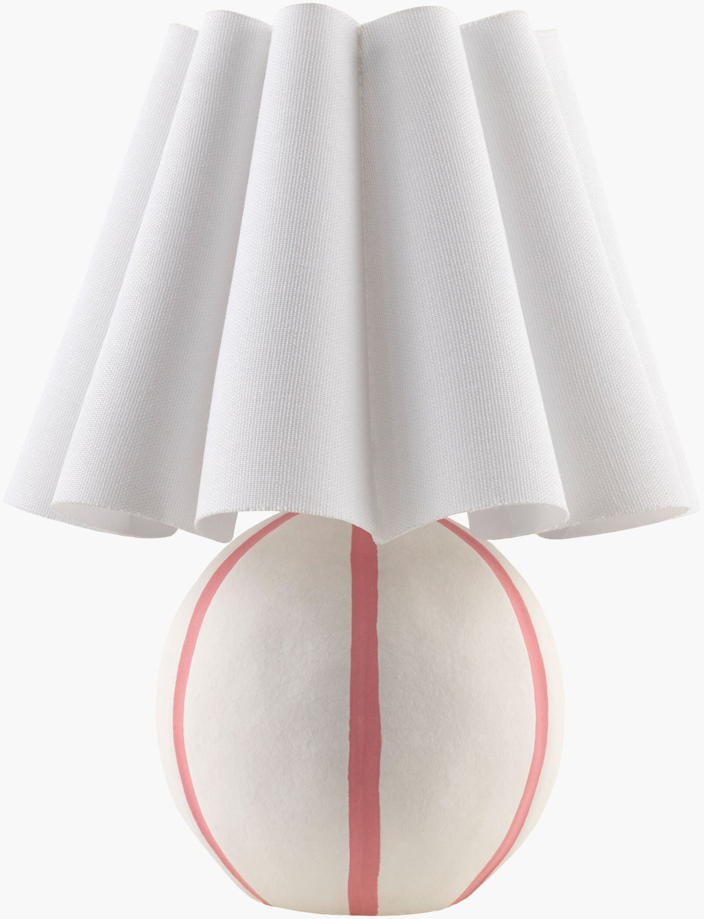 Pink Striped Round Table Lamp with Wavy Linen Shade