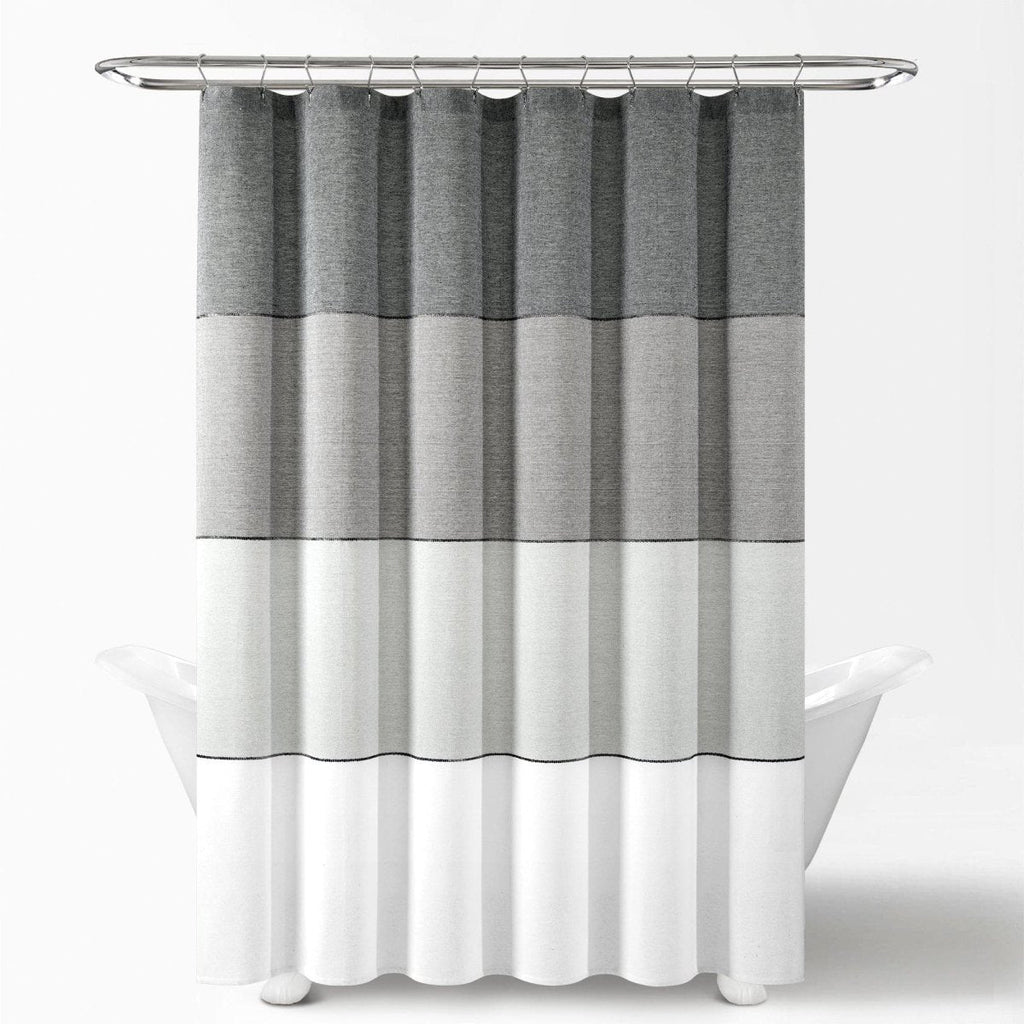Farmhouse or boho styled homes will love the slight texture and introduction of color through the simple pattern. This Color Block Ombre Yarn Dyed Recycled Cotton Shower Curtain measures 72 inches on each side and should fit most standard bathtubs and installs easily with standard shower curtain rings or hooks. Its opacity adds full privacy to the person taking a bath or shower.