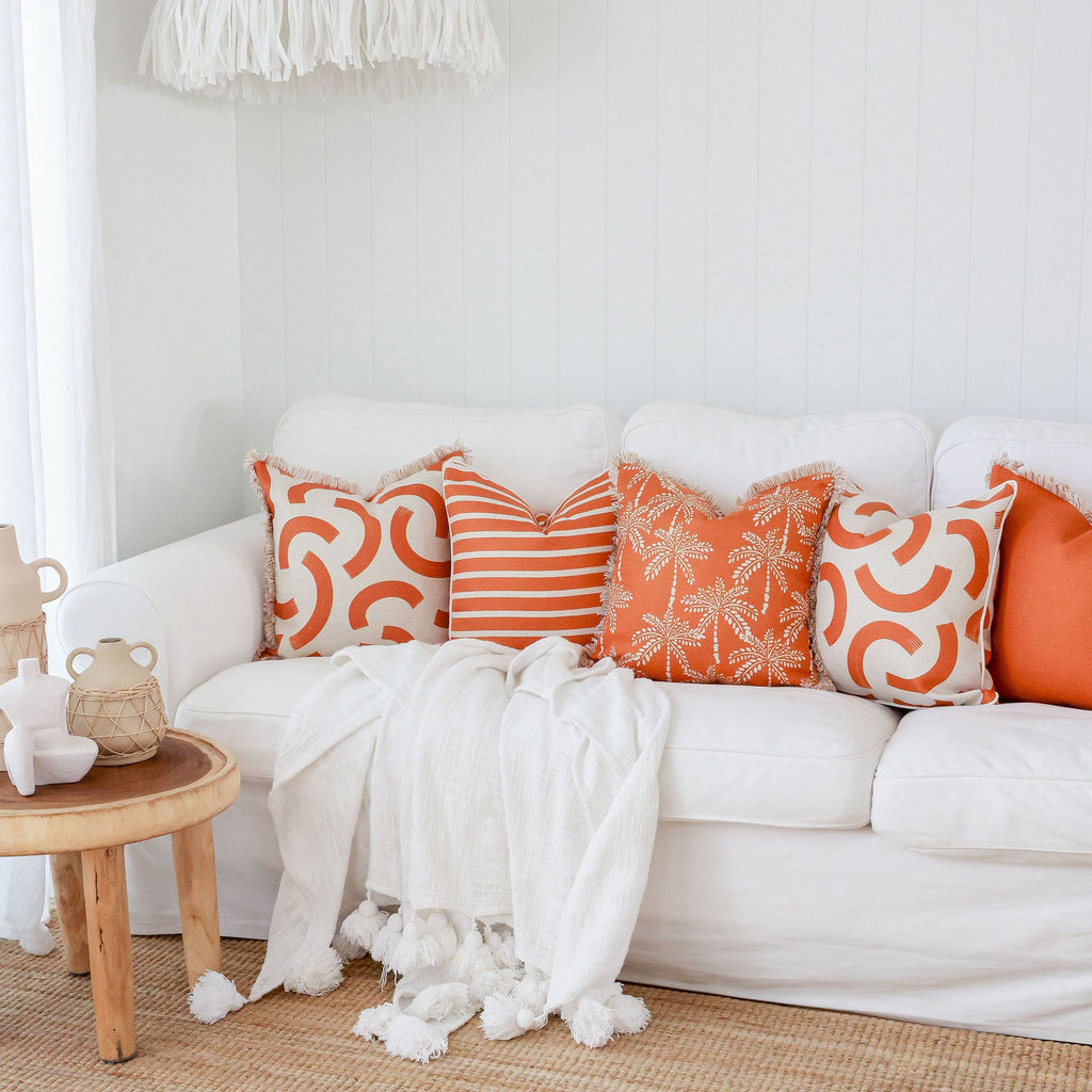 Cushion Cover-Coastal Fringe-Solid Burnt Orange-60cm x 60cm