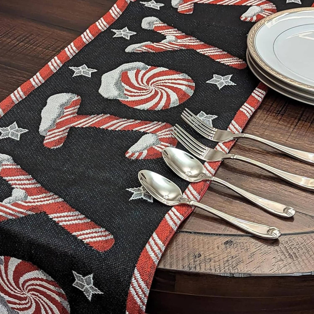 A merry mix of peppermint candy canes and joy, this runner is a festive flair master, turning your table into a holiday spectacle!