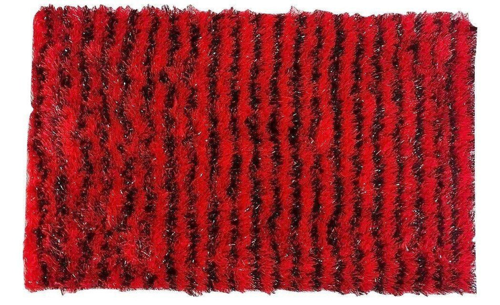 Plush plus soft magical red and black striped small rug - measured at 20" W x 32" L.