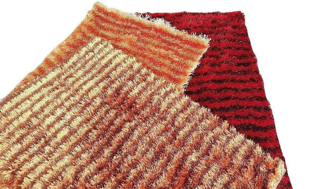 Plush plus soft magical orange and brown striped small rug - measured at 20" W x 32" L.