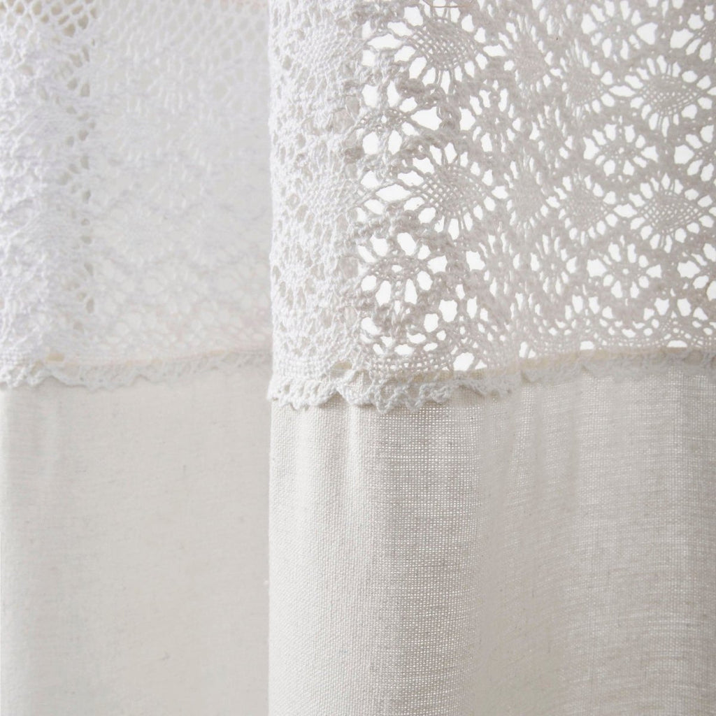 Styled with a charming lace accent stripe, this Dana Lace Shower Curtain is sure to brighten any bathroom. The neutral colors make it easy to match this shower curtain in nearly any design theme. Use this shower curtain to update your master or guest bathroom.