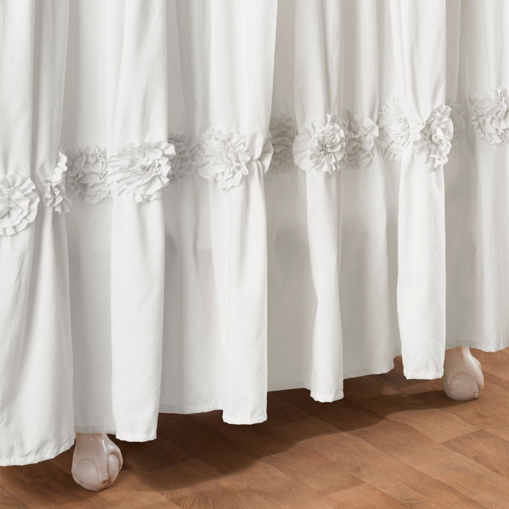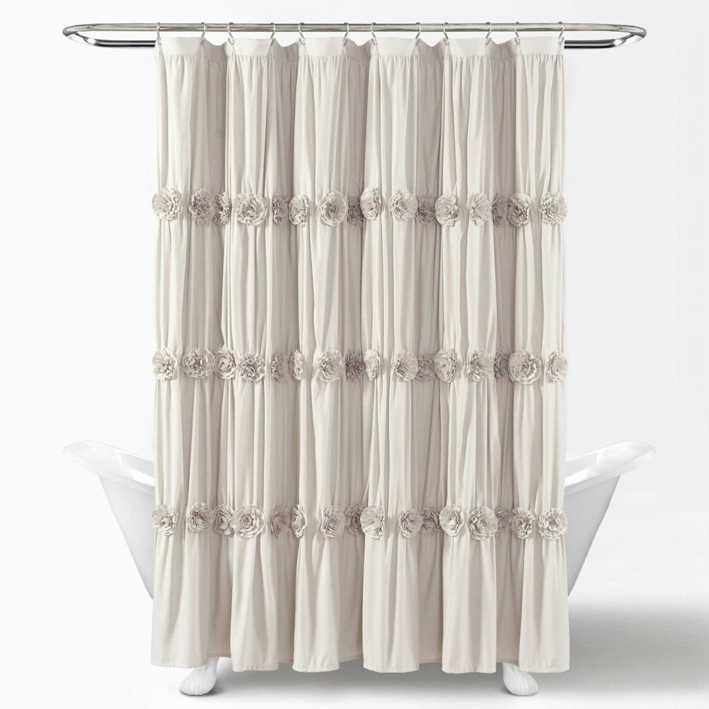 With details such as ruching and hand-crafted flowers, the Darla Shower Curtain can change the whole look of your bathroom without overwhelming it. The solid color design makes it easy to match the rest of your bathroom decor.