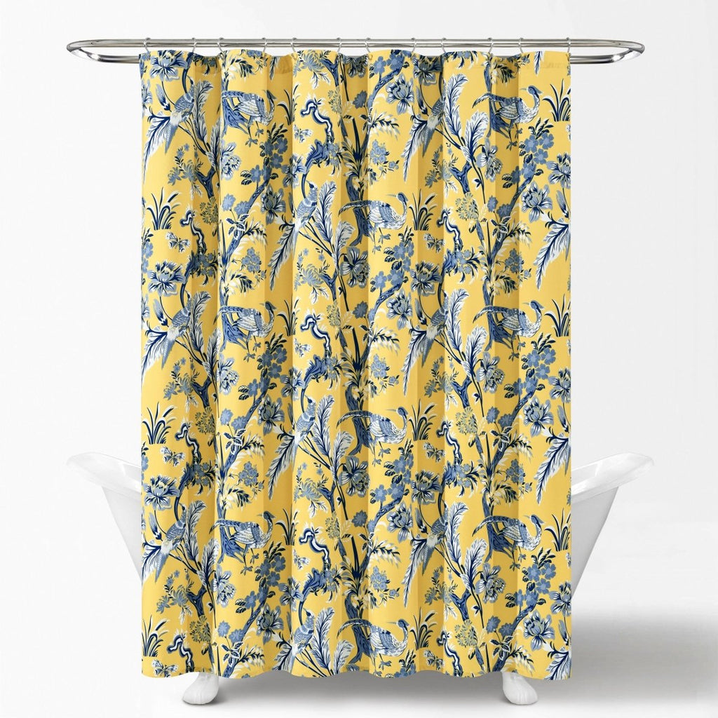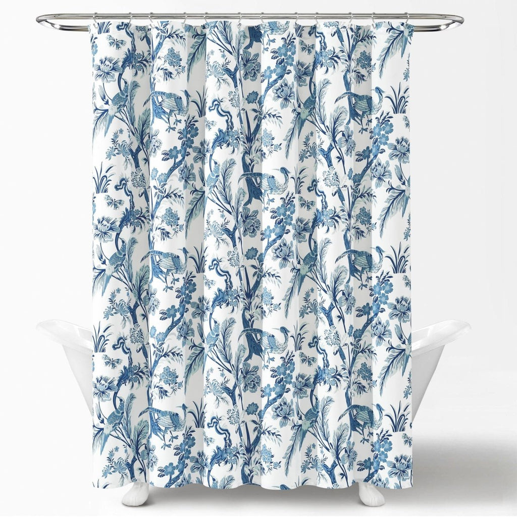 This dazzling Dolores Shower Curtain features a printed pattern of peacocks, unique leaves, and flowers for a bold and stunning look. The distinctive pattern of this shower curtain will be the centerpiece of your master bathroom or guest bathroom renovation.