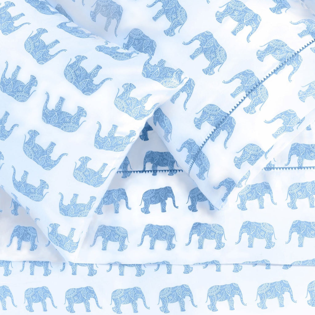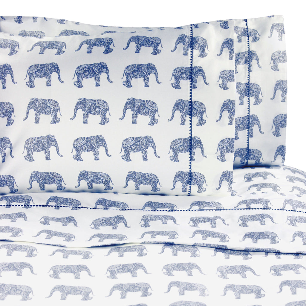 Our 400 thread count, 100% cotton printed elephant sheet set features a fun, repeating pattern of elephants decorated with Indian inspired design. Soft, smooth and durable, this sheet set is super cool and amazingly comfortable.