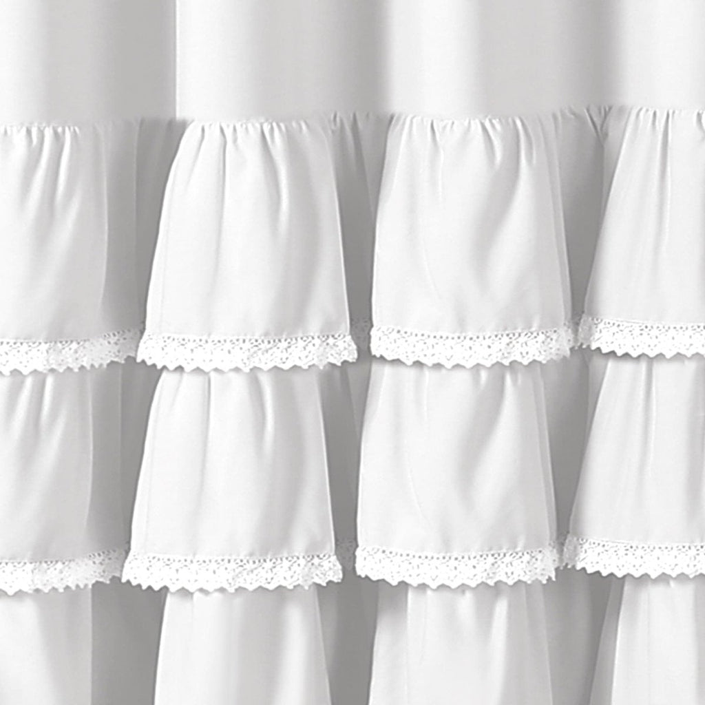 Quickly transform your bathroom into your own personal sanctuary with this stunning Ella Ruffle Lace Shower Curtain. The lower part of the shower curtain features layers of ruffles with lace borders, giving this shower curtain a look that creates a spa-like atmosphere.