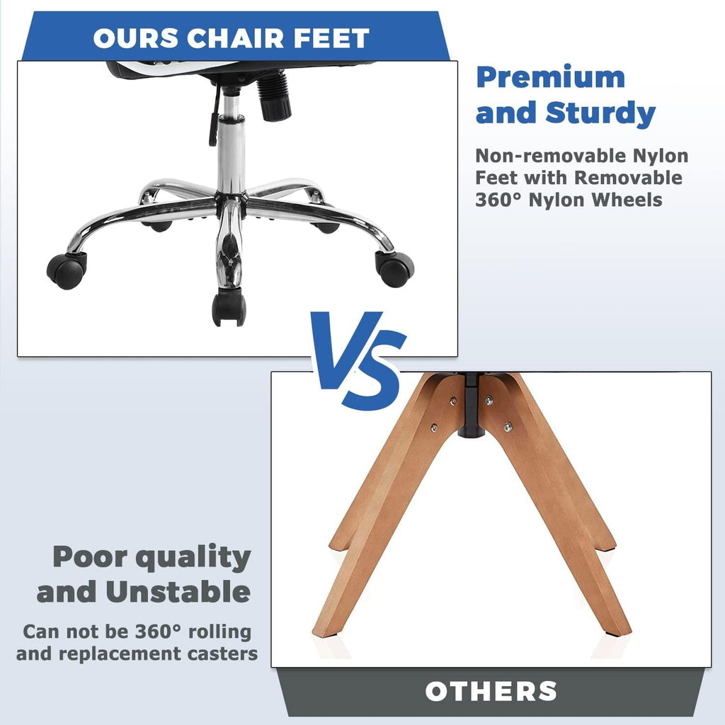 - Effortless mobility: 360° nylon wheels glide smoothly across flooring, protecting surfaces and keeping you agile at your workspace.