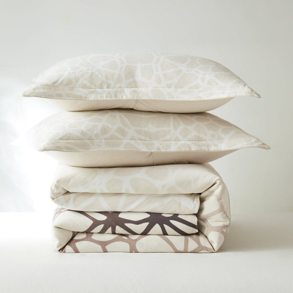 Influenced by the intricate beauty of mycelium networks, the Ethereal Tangle Velvet Comforter Set adds a dynamic visual effect to your bedroom decor. Symbolizing growth, this design features web-like, irregular flowing lines and a subtle ombré effect with soft, airy hues transitioning into deep earth tones.
