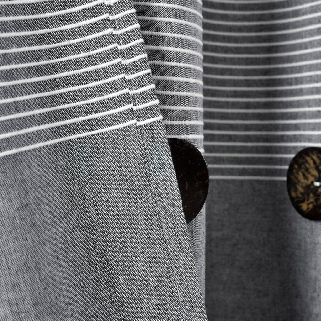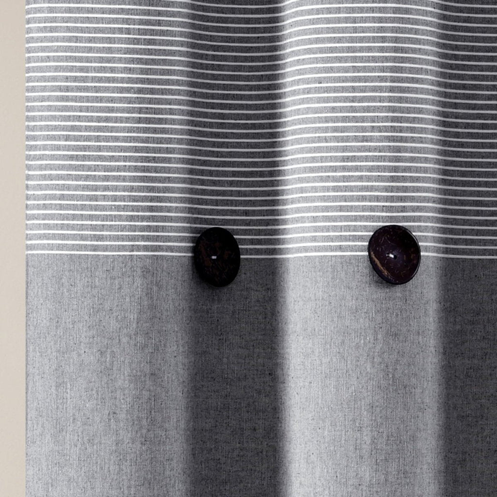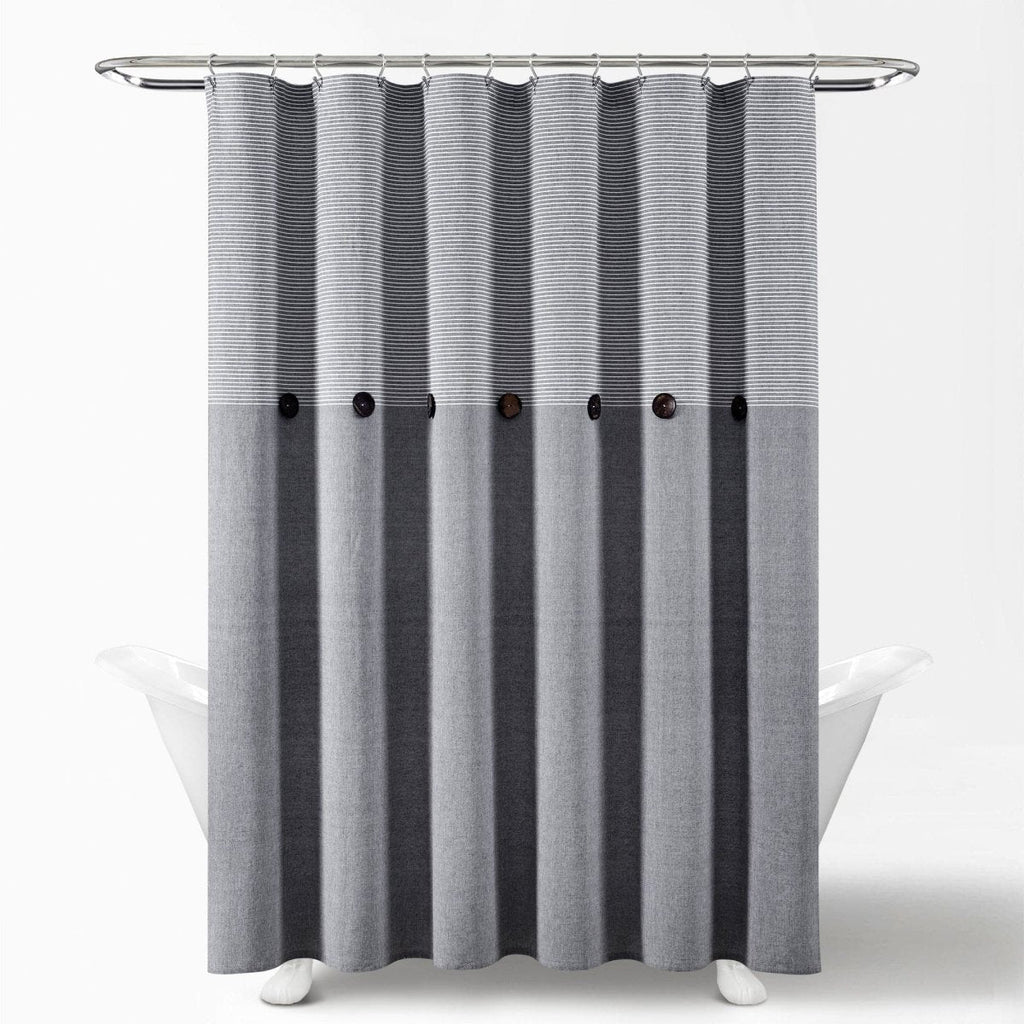 The trendy button embellishments and striped pattern in the top section of our Farmhouse Button Stripe Yarn Dyed Shower Curtain add a unique touch to the look of your space.
