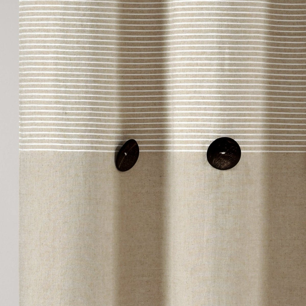 The recycled cotton blend fabric gives this Farmhouse Button Stripe Yarn Dyed Shower Curtain a soft hand feel. The neutral color options make it easy to coordinate this shower curtain with any existing decor you may have.