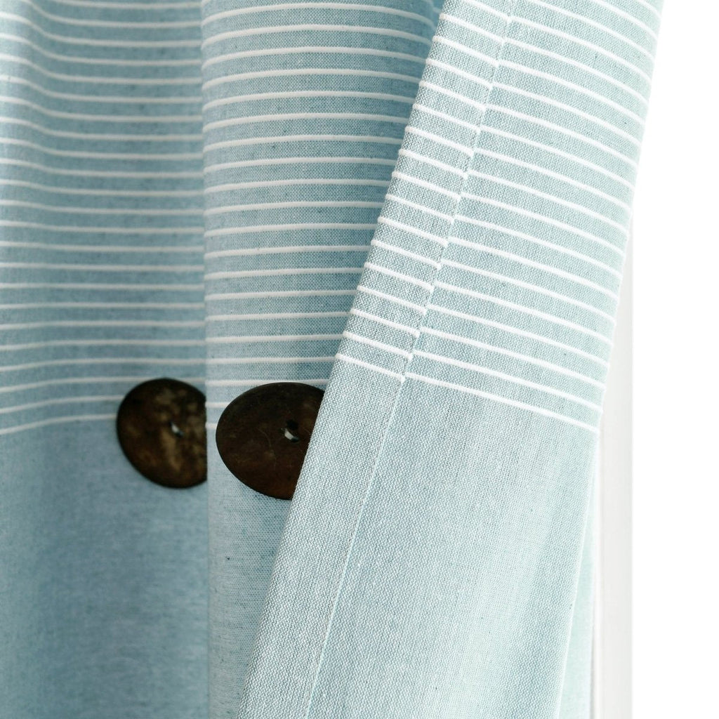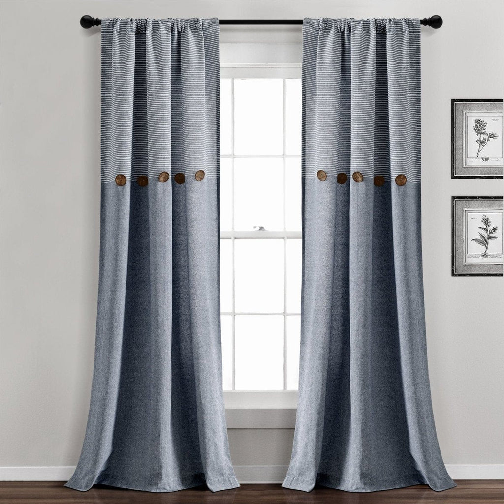 This Farmhouse Button Stripe Yarn Dyed Woven Cotton Blend Window Curtain Panel Set adds charming farmhouse style to your bedroom, living room, home office, nursery or dining room. Color blocking is always in style and we love the details of the stripes and buttons.