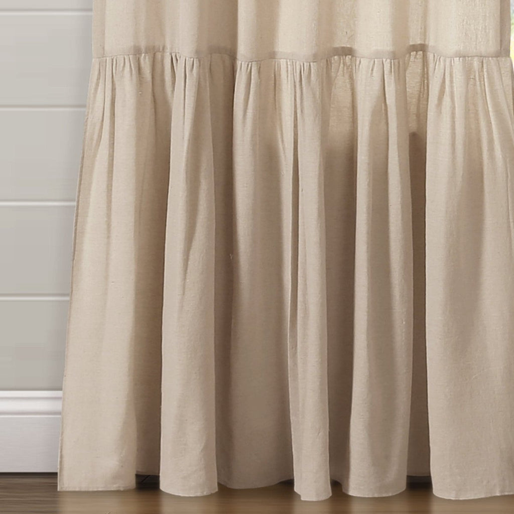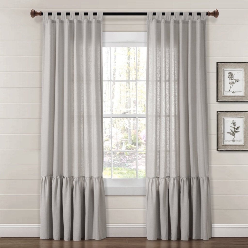 Elevate your farmhouse style with this subtly embellished Farmhouse Faux Linen Tab Top Window Curtain Panel. This window panel features a timeless style with a slight flair towards the bottom. Its simple design brings a homey yet polished look to your space.