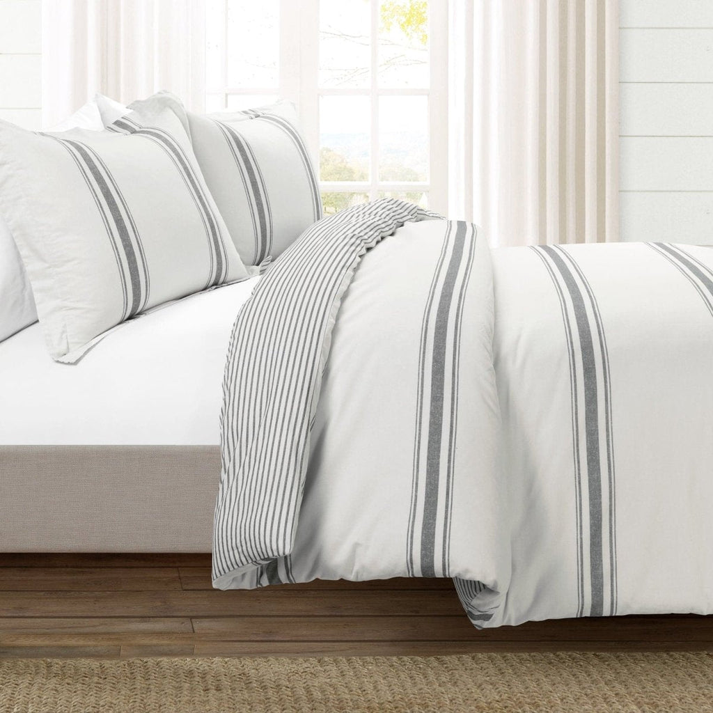 Give your primary bedroom or guest bedroom a makeover with this traditional farmhouse style reversible 100% cotton duvet cover set. The printing on this Farmhouse Stripe Cotton Duvet Cover Set will pair perfectly with your shiplap walls and distressed wooden furniture.