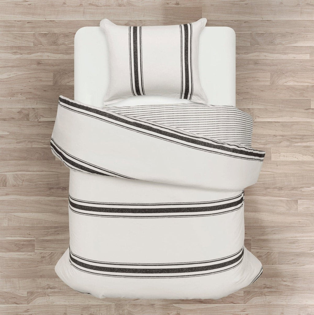 This Farmhouse Stripe Cotton Duvet Cover Set includes the duvet and matching pillow sham(s). It is available in your choice of Twin XL, Full/Queen or King Sizes. Please note some colors won't be offered in all sies.
