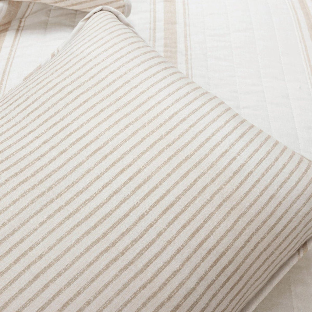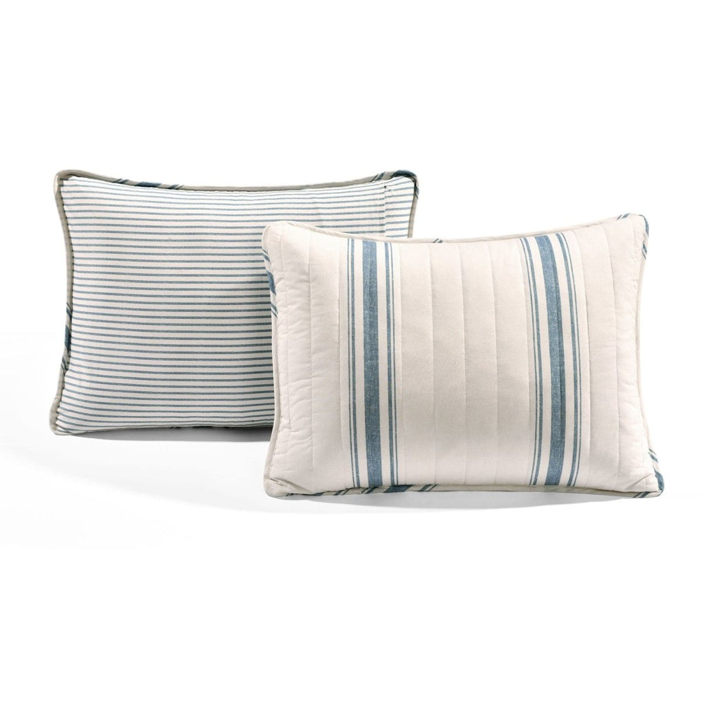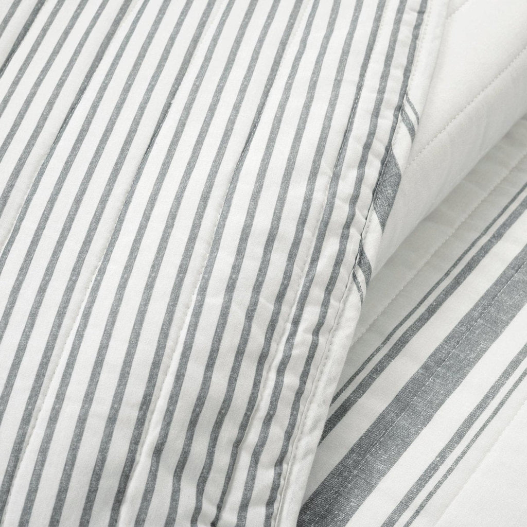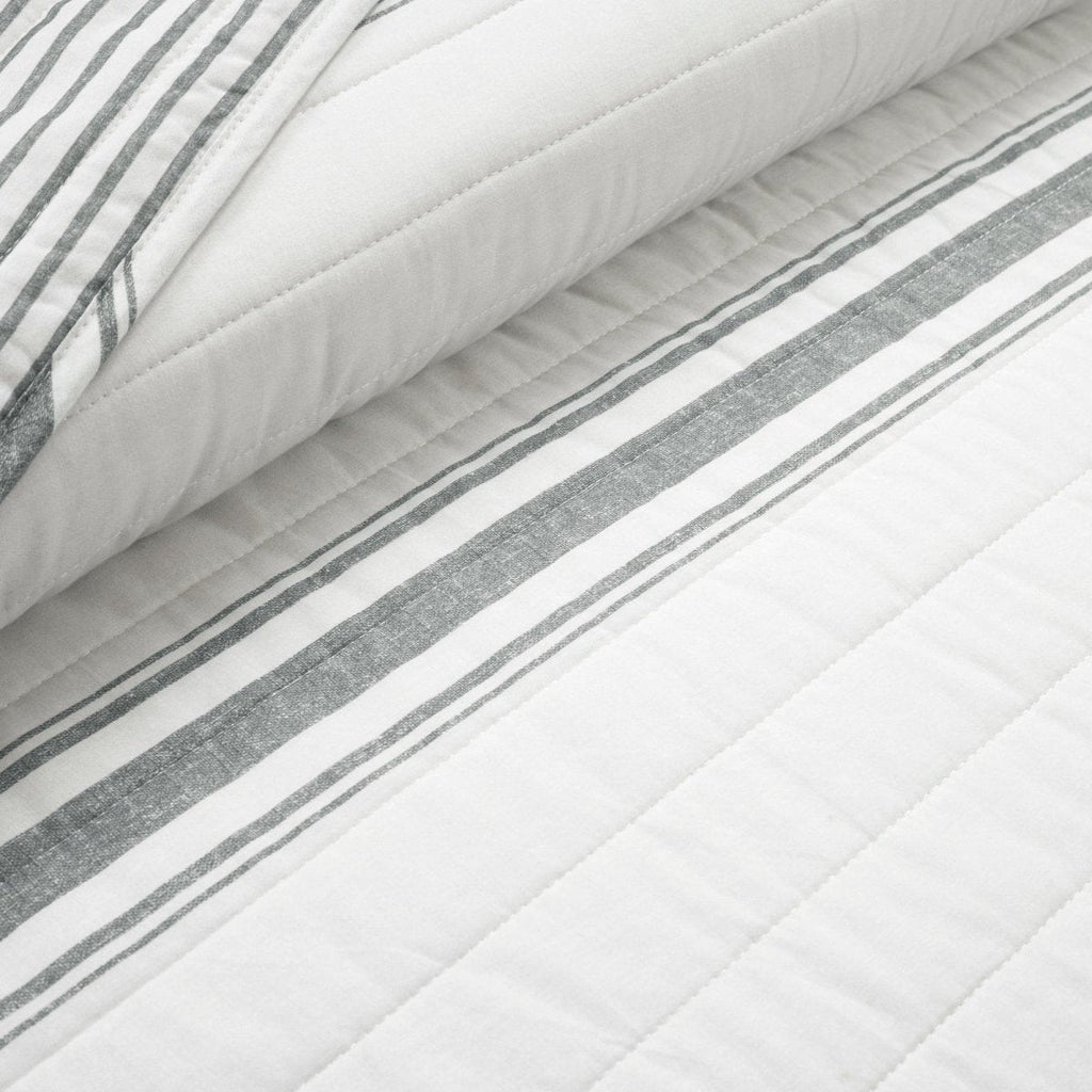 Our Farmhouse Stripe Reversible Cotton Quilt Set is reversible, giving you two stylish looks in one great set! The back of both the quilt and the shams features a pinstripe print in the same colors.