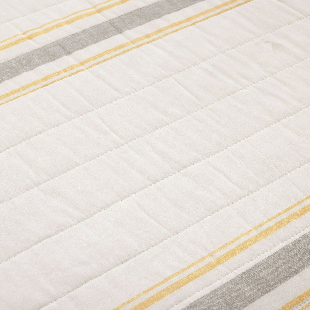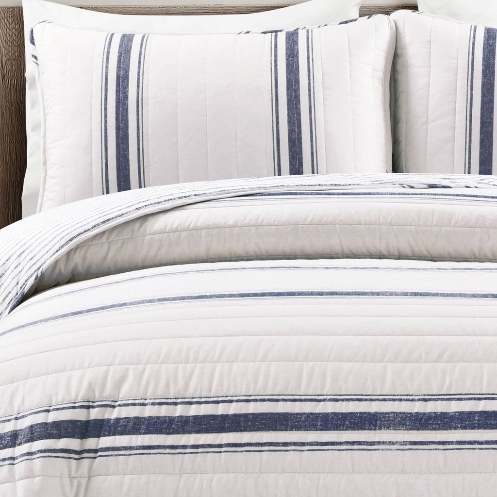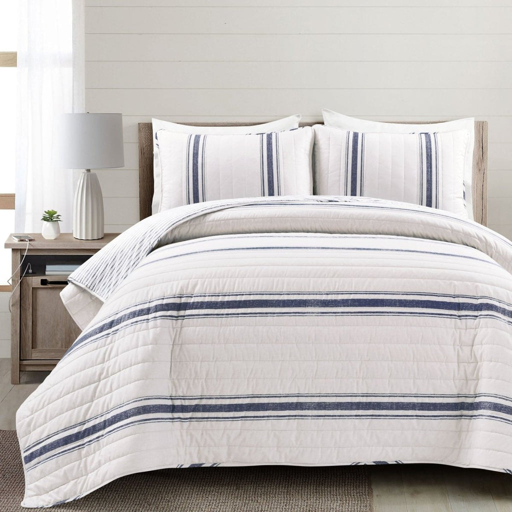 This Farmhouse Stripe Reversible Cotton Quilt Set includes a reversible 100% cotton quilt and matching reversible pillow shams (1 sham for Twin XL, 2 shams for full/queen, king and California king sizes).