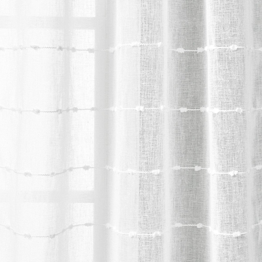 This Farmhouse Textured Grommet Sheer Indoor/Outdoor Window Curtain is sold by the single panel, so if you need to replace one panel or need an odd number of panels, you won't have to purchase more than you need. Each panel measures 50 inches wide and 84 inches long.
