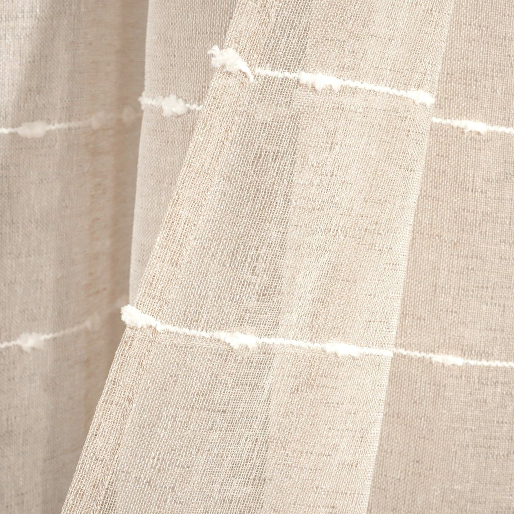 This unique Farmhouse Textured Grommet Sheer Window Curtain Panel has a subtle and beautiful texture that offers a stylish touch. The sheer attribute allows plenty of light into your home. The neutral tones of these panels fit almost any style.