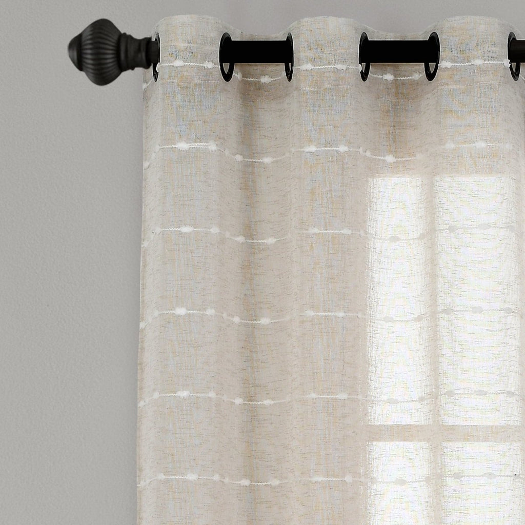 You are sure to love our popular Farmhouse Textured Grommet Sheer Window Curtain Panel Set, which will let plenty of light into your home while still providing some privacy from outsiders. The dotted stripe pattern adds that little something extra to your space.
