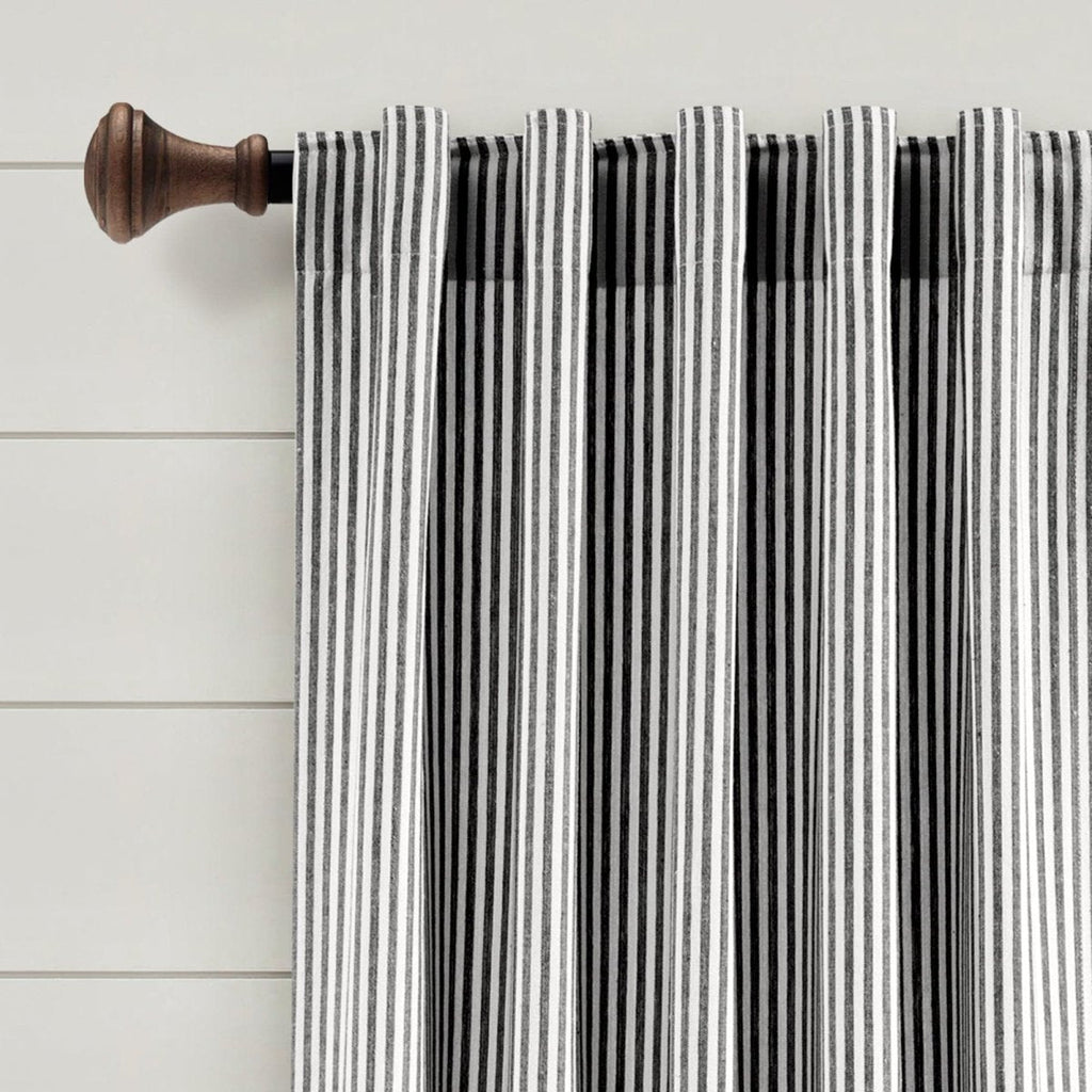 Bring charm to your traditional farmhouse home with this timeless striped window panel set. The ticking stripes carry a bit of vintage style making this piece an easy fit into your cozy interior. A classic style like this Farmhouse Vintage Stripe Recycled Cotton Window Curtain Panel Set complements any room in the home.