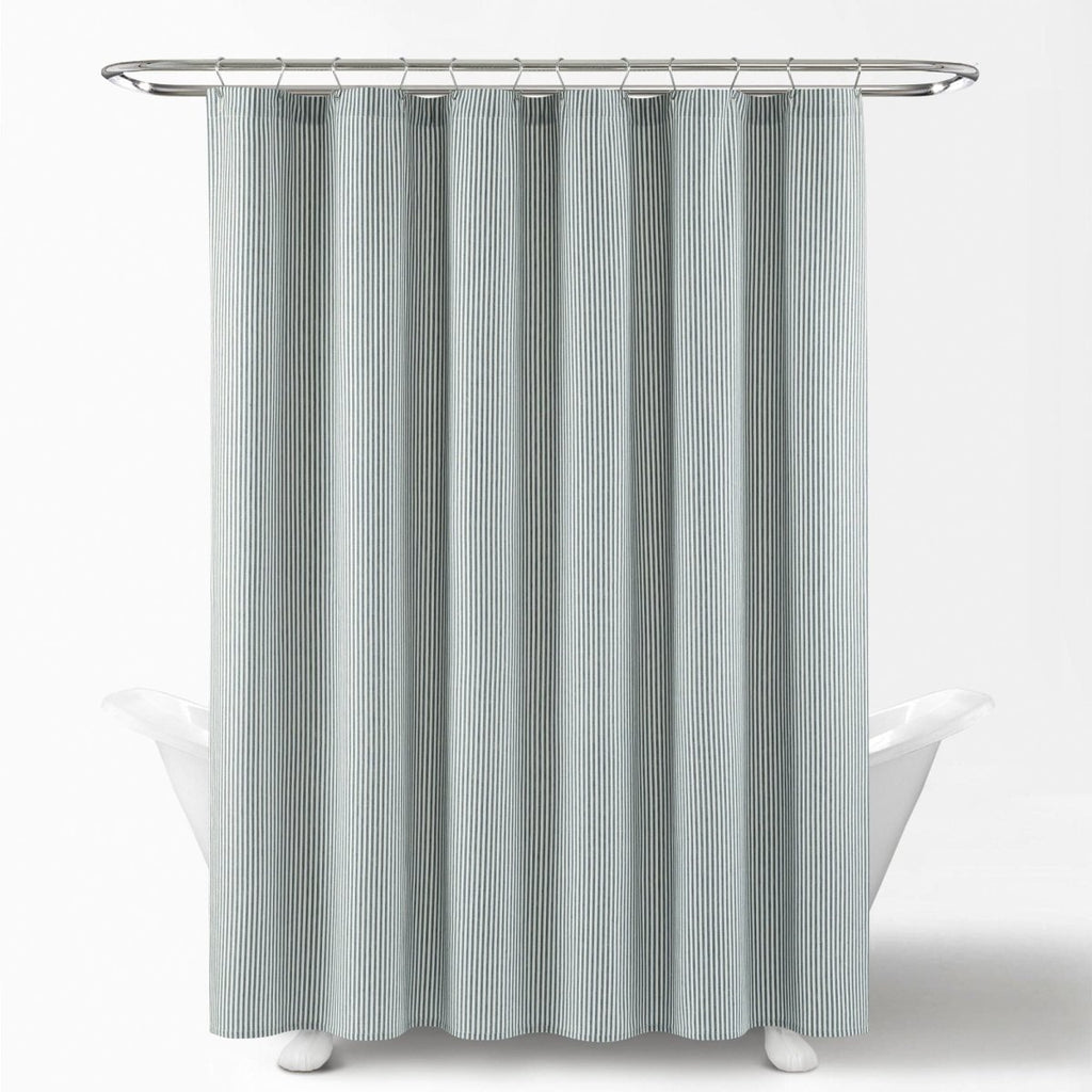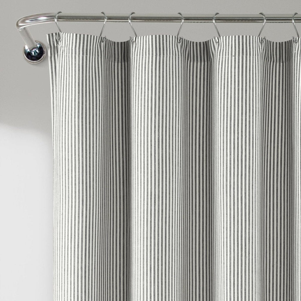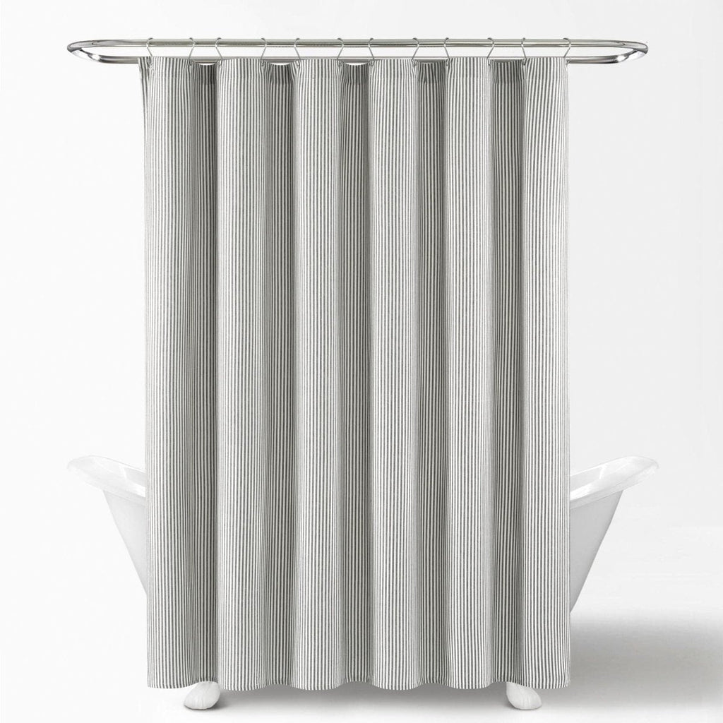 This Farmhouse Vintage Stripe Yarn Dyed Cotton Shower Curtain adds functional style and texture to your space without taking over the design. Measuring 72 inches on each side, this stylish shower curtain will fit most any bathtub and installs easily with standard shower curtain rings or hooks. Its opacity adds full privacy to the person taking a bath or shower.