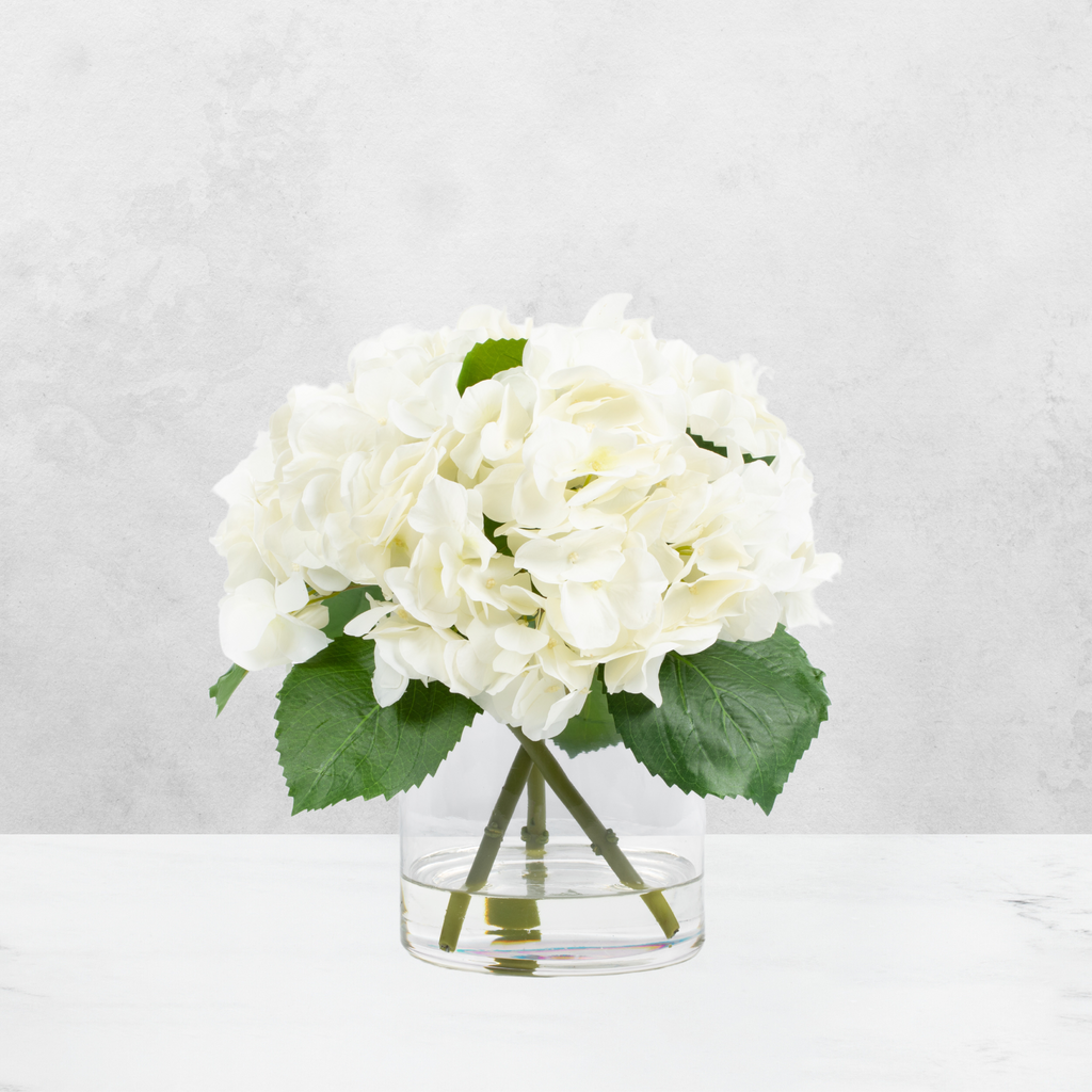 Hydrangeas are universally appealing, making this display perfect for all styles of decor. Handcrafted for lasting beauty.