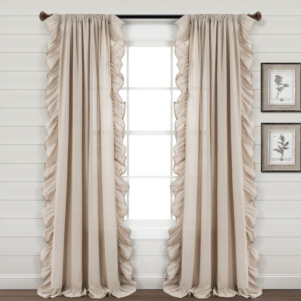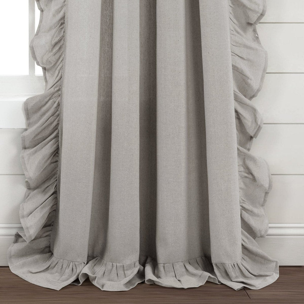 This window curtain satisfies a shabby and chic inspired style. The elegant ruffles along three edges of each Faux Linen Ruffle Window Curtain Panel offer a graceful presence into your living room, home office, nursery, or bedroom.