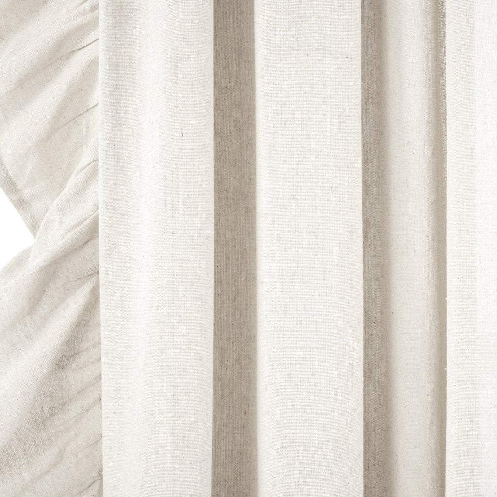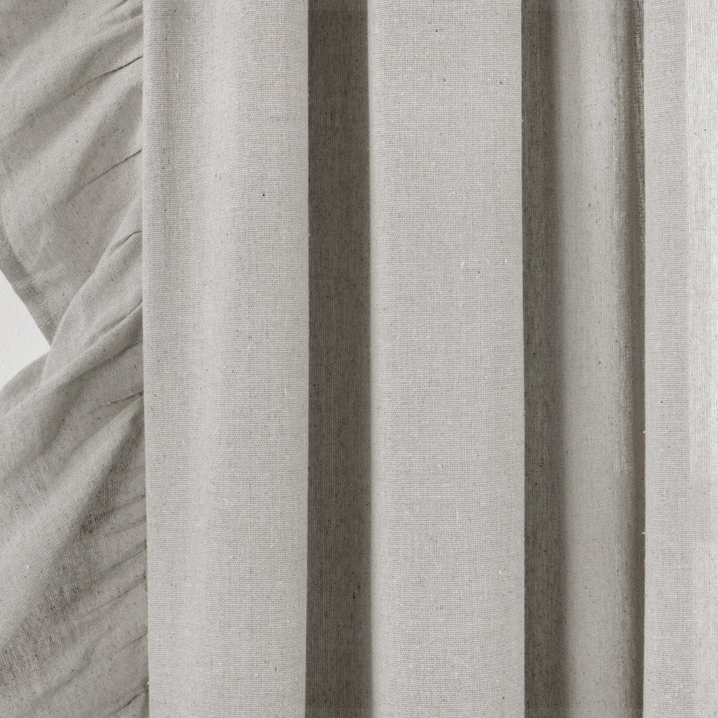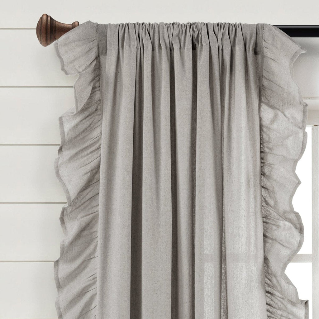 Elevate your home design with the cascading ruffles adorning this Faux Linen Ruffle Window Curtain Panel. The versatile style fits easily into many different living spaces and interior design themes like cottage, farmhouse and boho.