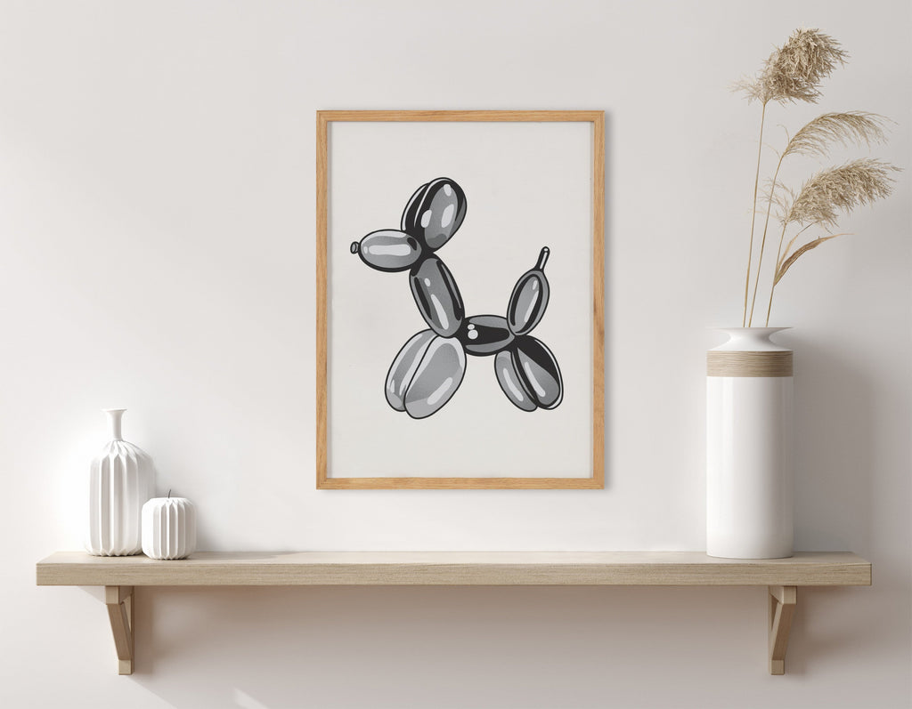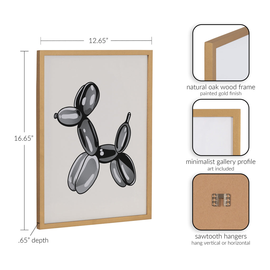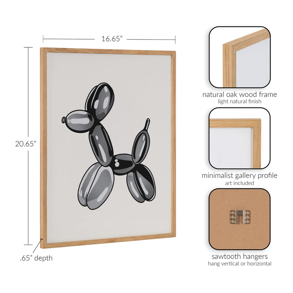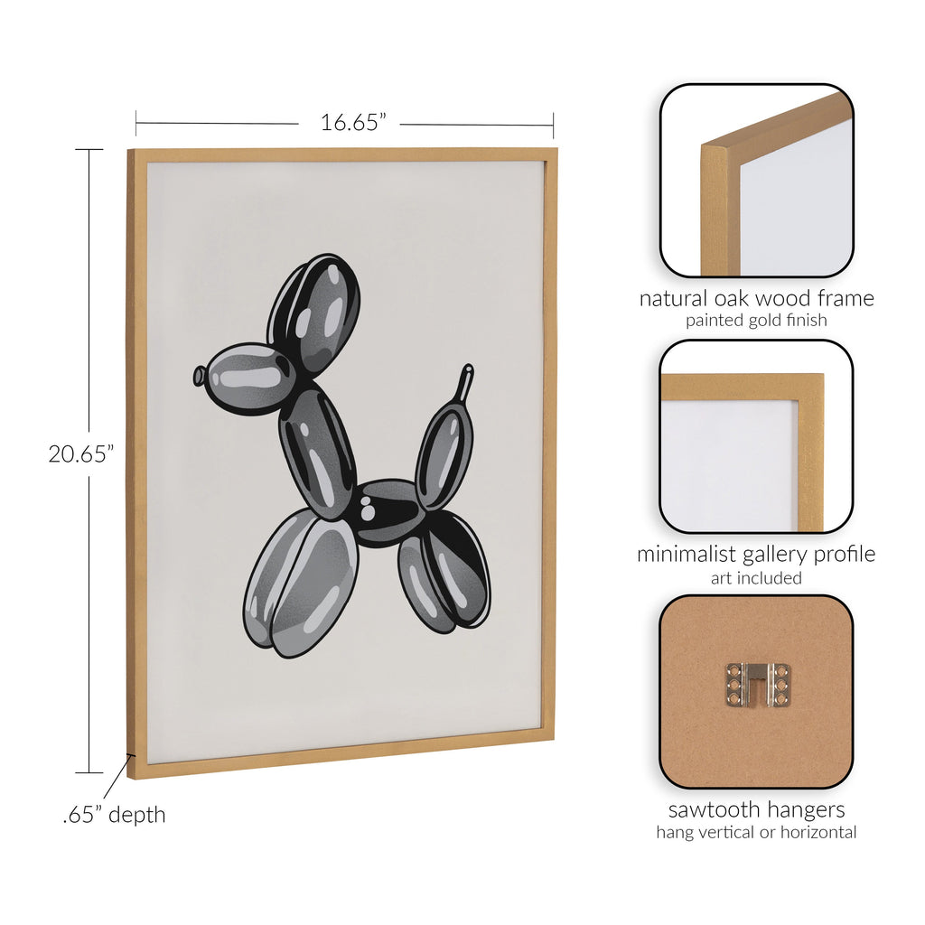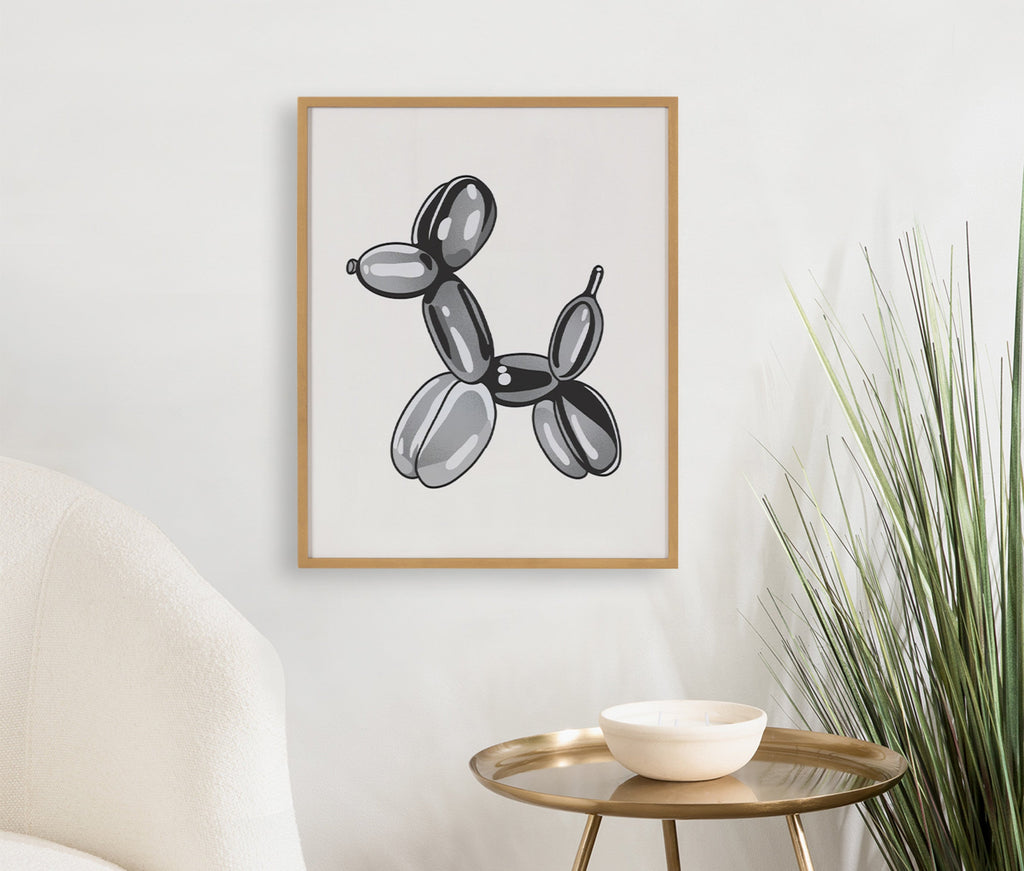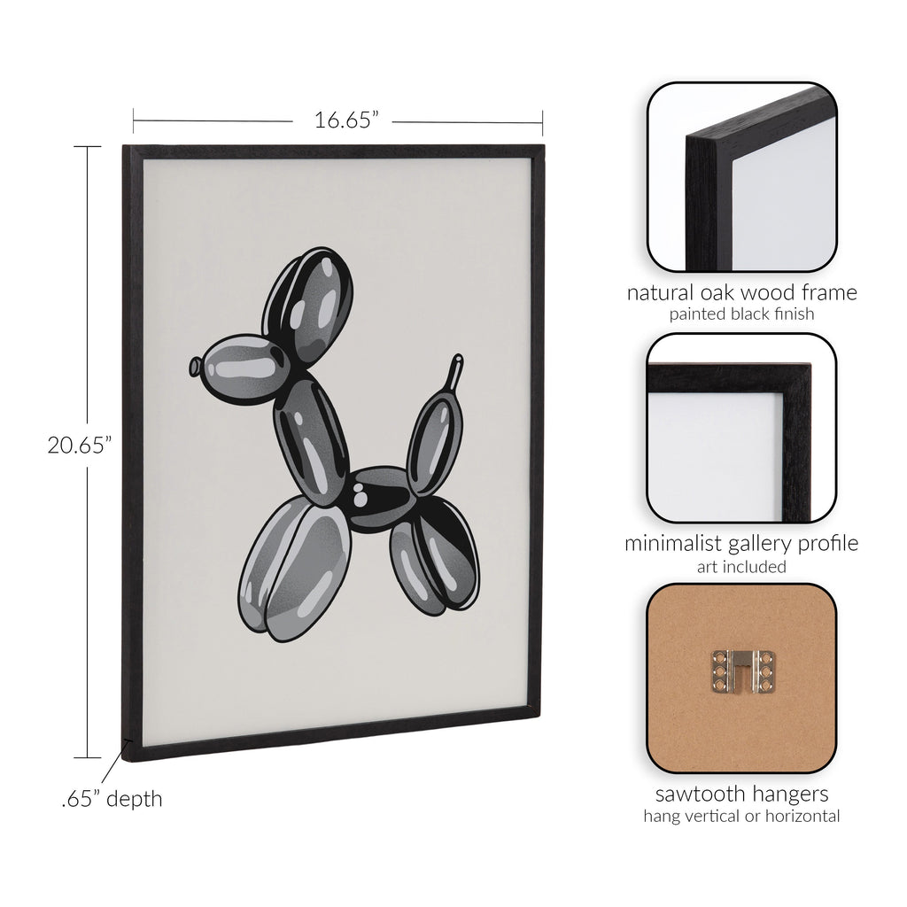 This modern art piece features a playful black balloon dog. Printed in the USA in Waunakee, Wisconsin, this modern framed wall art is sure to bring joy to your space. Our design team curates art that will fit perfectly in any room of your home. Printed on semi-gloss paper made of responsibly sourced wood fibers and framed with a simple solid wood gallery frame, this wall art is easy to display on the wall and will match any decor style. Showcase this curated art in your living room, bedroom, home office, kitchen, bathroom, nursery, or anywhere you want to bring a little beauty and charm to your walls. Specializing in home decor, we are continually bringing timeless works of art for the traditional decorator as well as trend-forward pieces for that eclectic art lover. Our high-quality framed wall art also makes excellent gifts for birthdays, holidays, or housewarming parties.