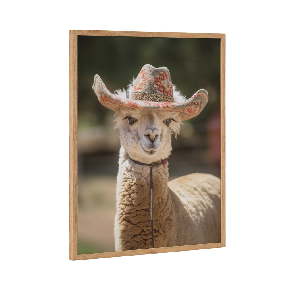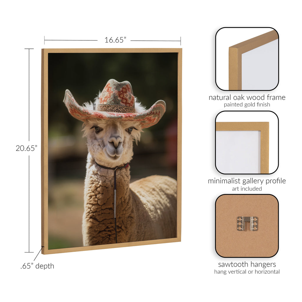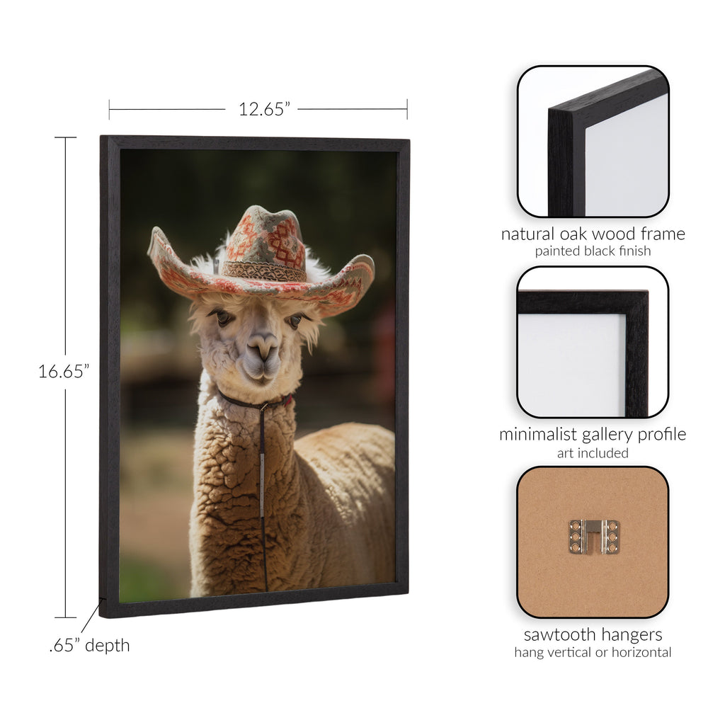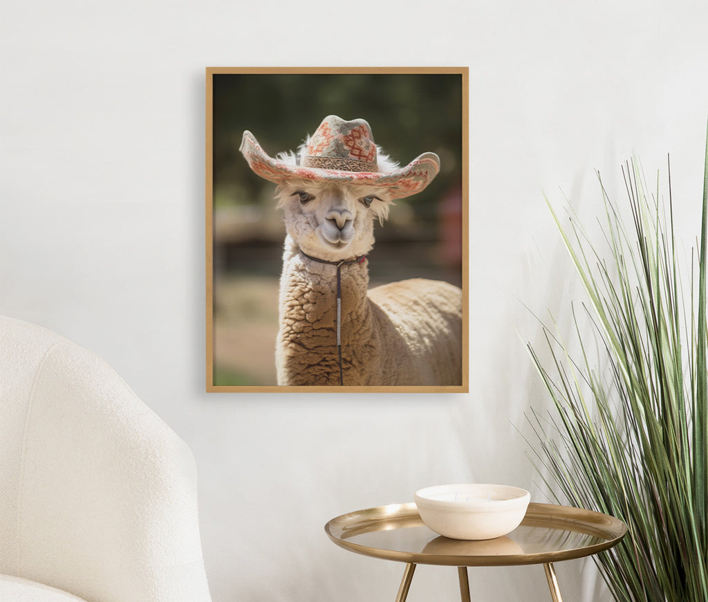 This cute boho artwork features a llama wearing a Western cowgirl hat, adding a fun, playful touch to your wall. Printed in the USA in Waunakee, Wisconsin, this modern framed wall art is sure to bring joy to your space. Our design team curates art that will fit perfectly in any room of your home. Printed on semi-gloss paper made of responsibly sourced wood fibers and framed with a simple solid wood gallery frame, this wall art is easy to display on the wall and will match any décor style. Showcase this curated art in your living room, bedroom, home office, kitchen, bathroom, nursery, or anywhere you want to bring a little beauty and charm to your walls. Specializing in home décor, we are continually bringing timeless works of art for the traditional decorator as well as trend-forward pieces for that eclectic art lover. Our high-quality framed wall art also makes excellent gifts for birthdays, holidays, or housewarming parties.
