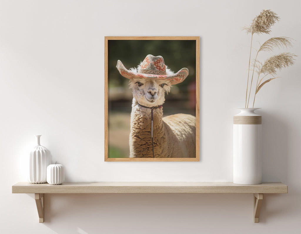 - Print "Boho Llama Alpaca Wearing A Western Cowgirl Hat" ©2024