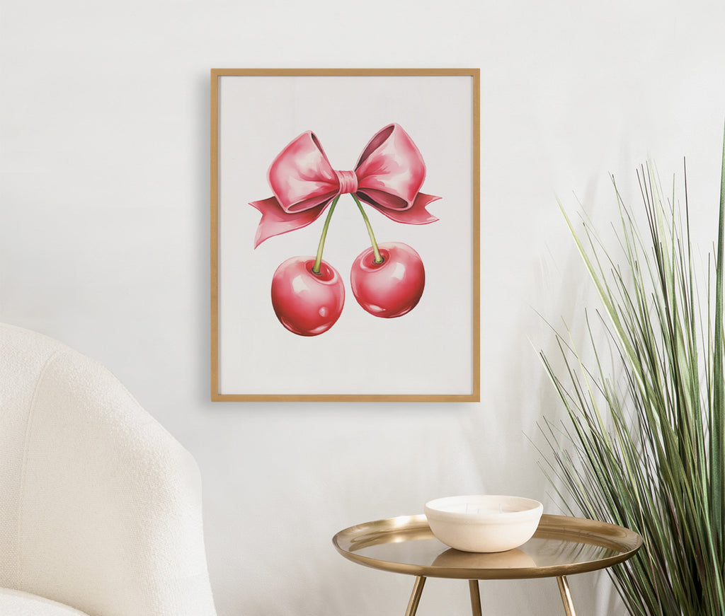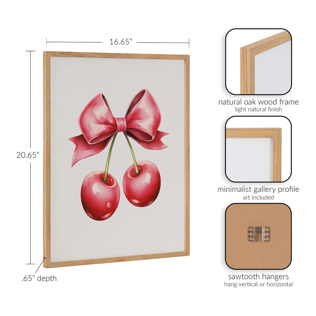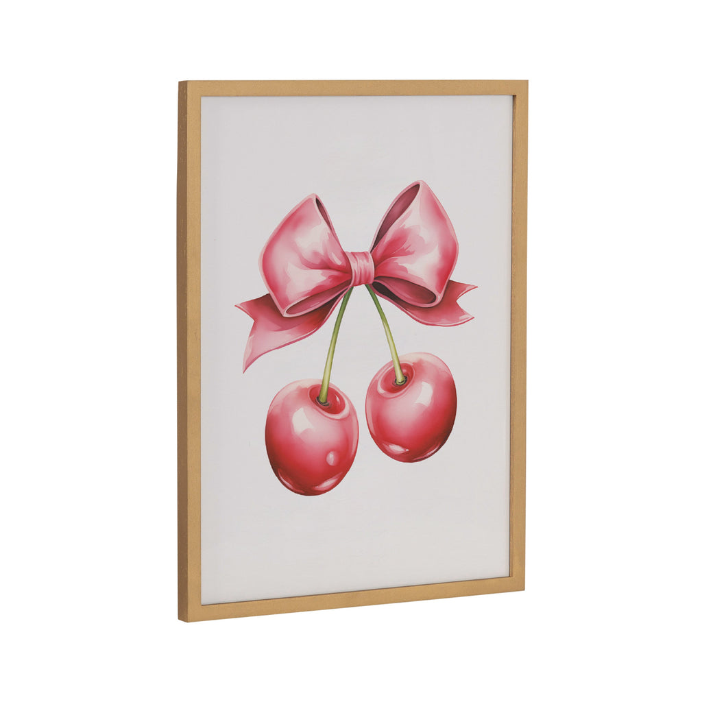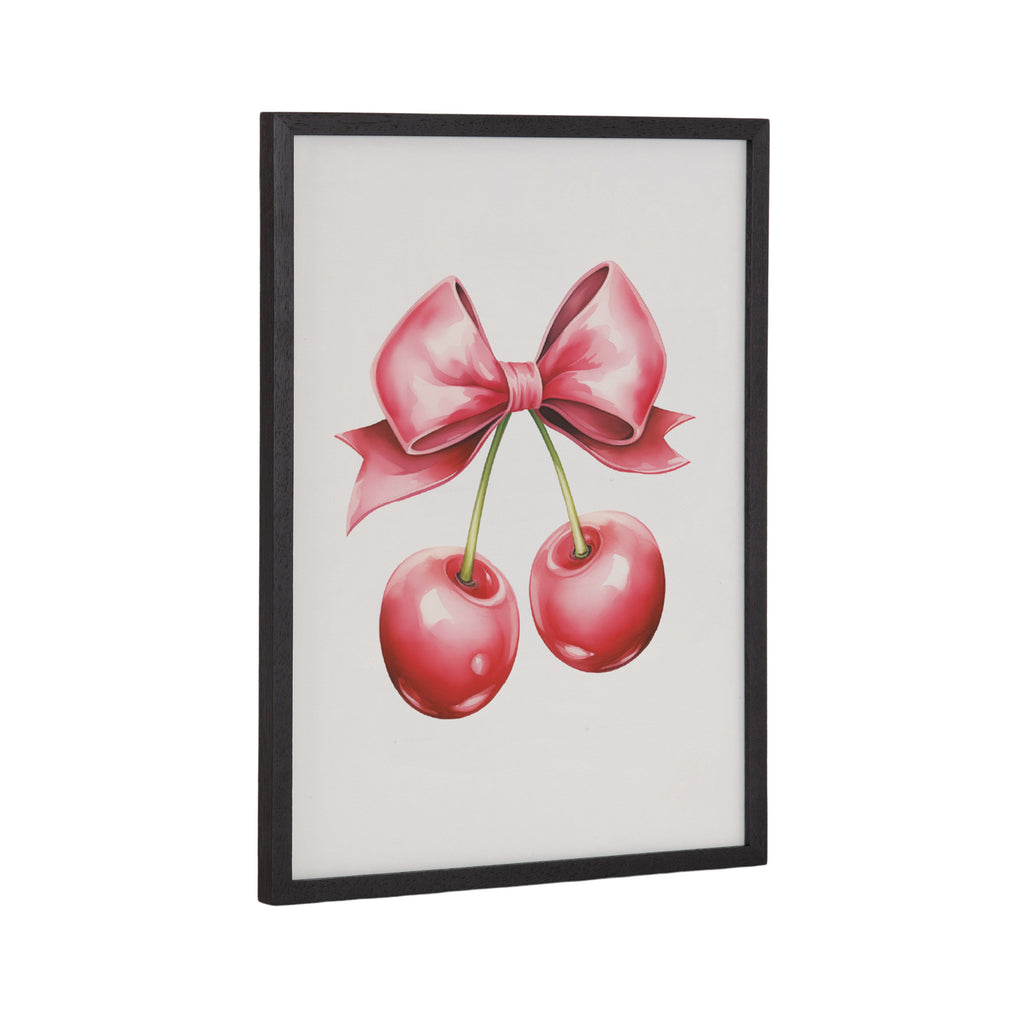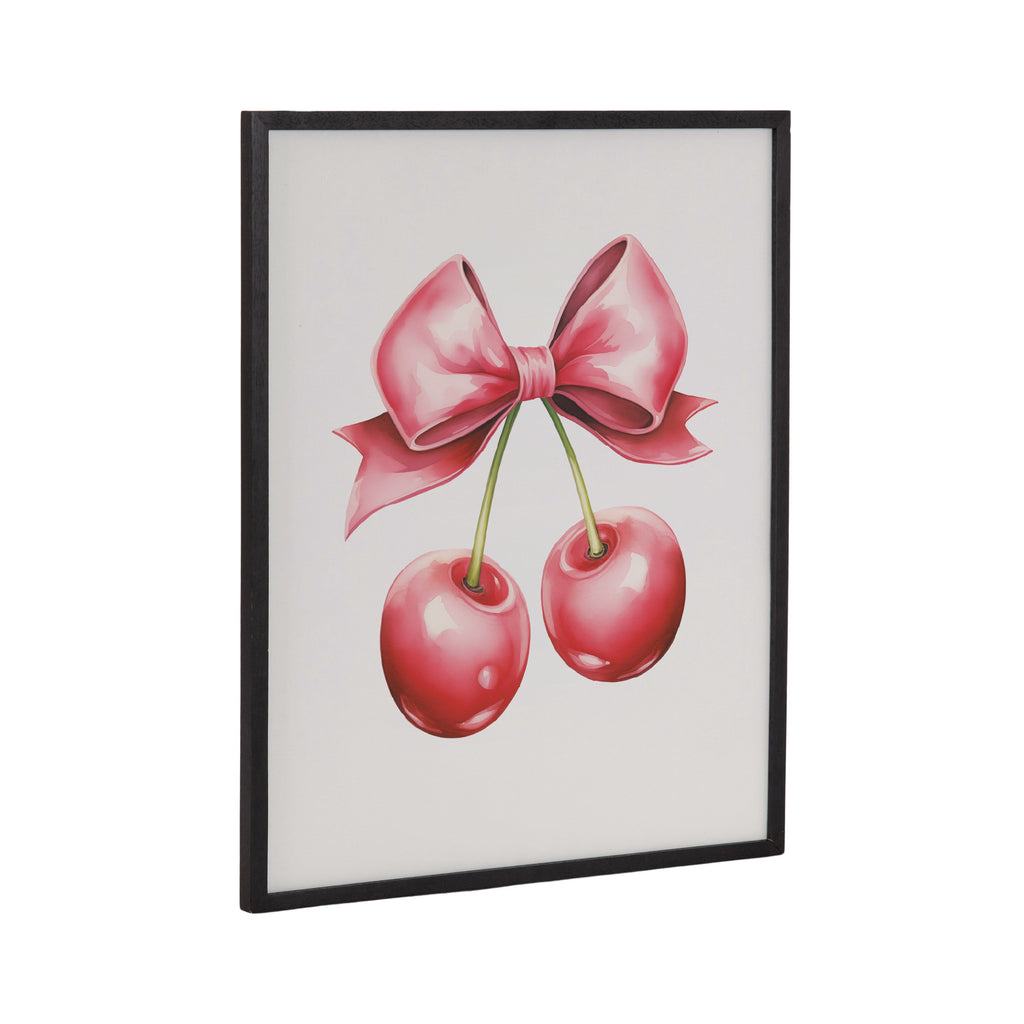 This cute piece showcases vibrant pink bows with red cherries, bringing a fun retro vibe to your space. Printed in the USA in Waunakee, Wisconsin, this modern framed wall art is sure to bring joy to your space. Our design team curates art that will fit perfectly in any room of your home. Printed on semi-gloss paper made of responsibly sourced wood fibers and framed with a simple solid wood gallery frame, this wall art is easy to display on the wall and will match any decor style. Showcase this curated art in your living room, bedroom, home office, kitchen, bathroom, nursery, or anywhere you want to bring a little beauty and charm to your walls. Specializing in home decor, we are continually bringing timeless works of art for the traditional decorator as well as trend-forward pieces for that eclectic art lover. Our high-quality framed wall art also makes excellent gifts for birthdays, holidays, or housewarming parties.