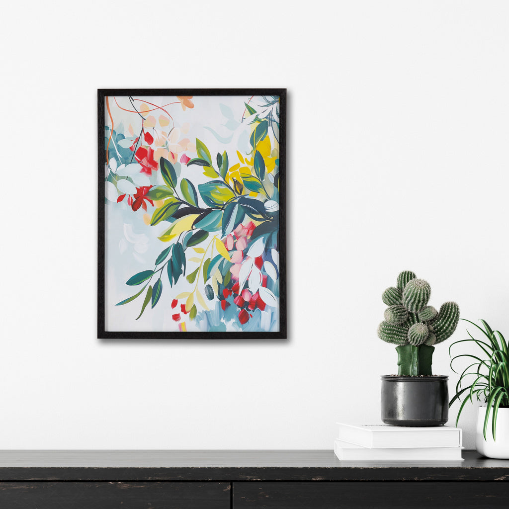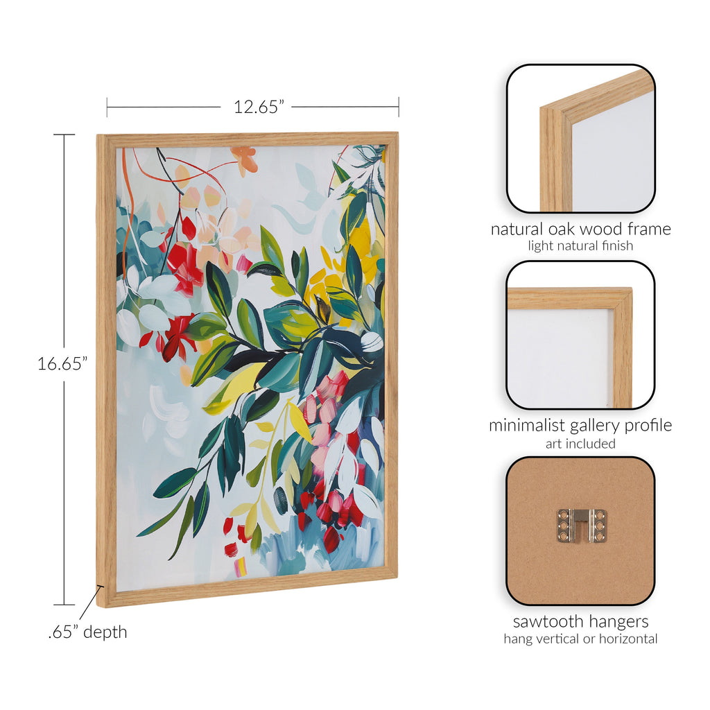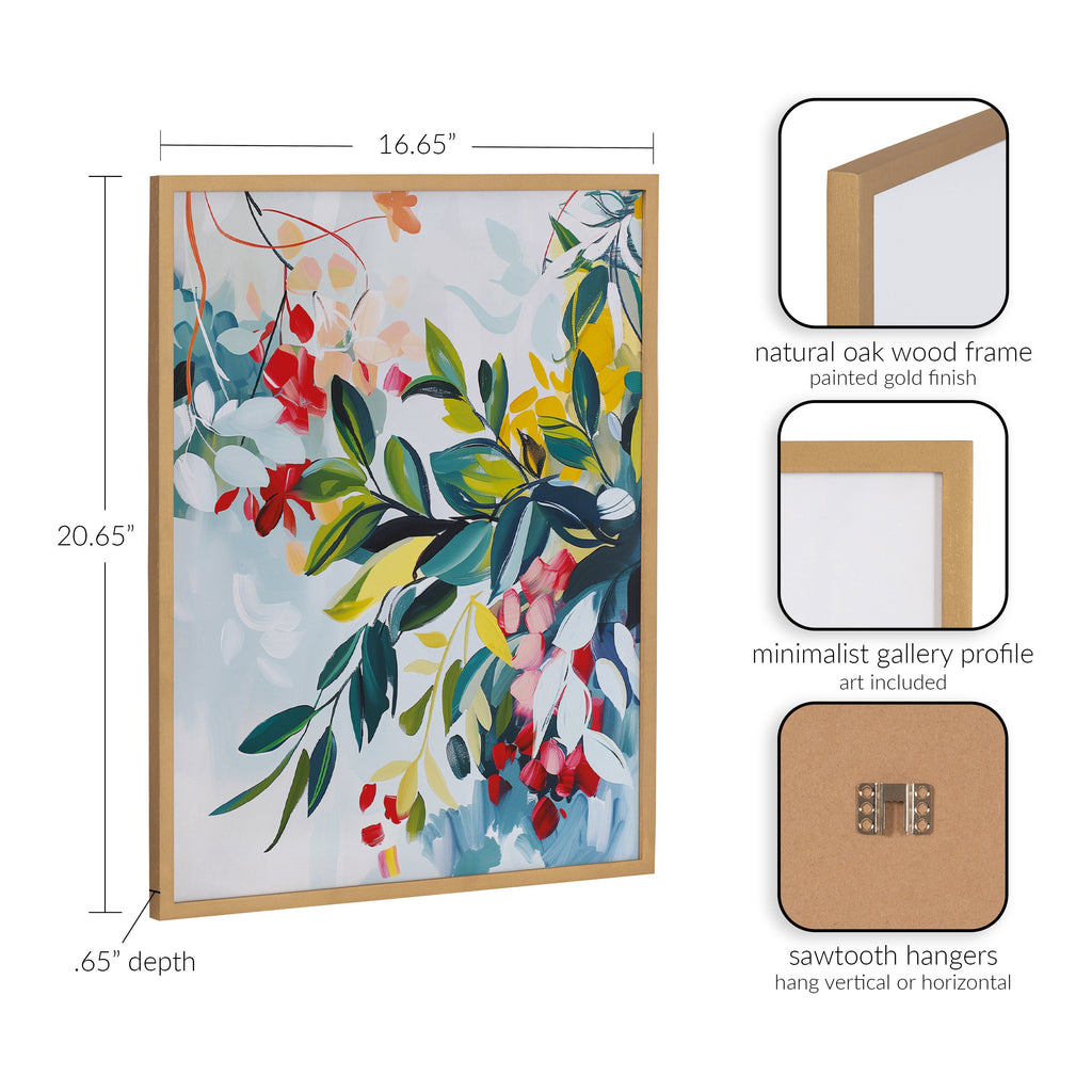 Featuring a rich blend of jewel-toned colors, this abstract botanical art brings vibrant and elegant florals into any space. Printed in the USA in Waunakee, Wisconsin, this modern framed wall art is sure to bring joy to your space. Our design team curates art that will fit perfectly in any room of your home. Printed on semi-gloss paper made of responsibly sourced wood fibers and framed with a simple solid wood gallery frame, this wall art is easy to display on the wall and will match any décor style. Showcase this curated art in your living room, bedroom, home office, kitchen, bathroom, nursery, or anywhere you want to bring a little beauty and charm to your walls. Specializing in home décor, we are continually bringing timeless works of art for the traditional decorator as well as trend-forward pieces for that eclectic art lover. Our high-quality framed wall art also makes excellent gifts for birthdays, holidays, or housewarming parties.