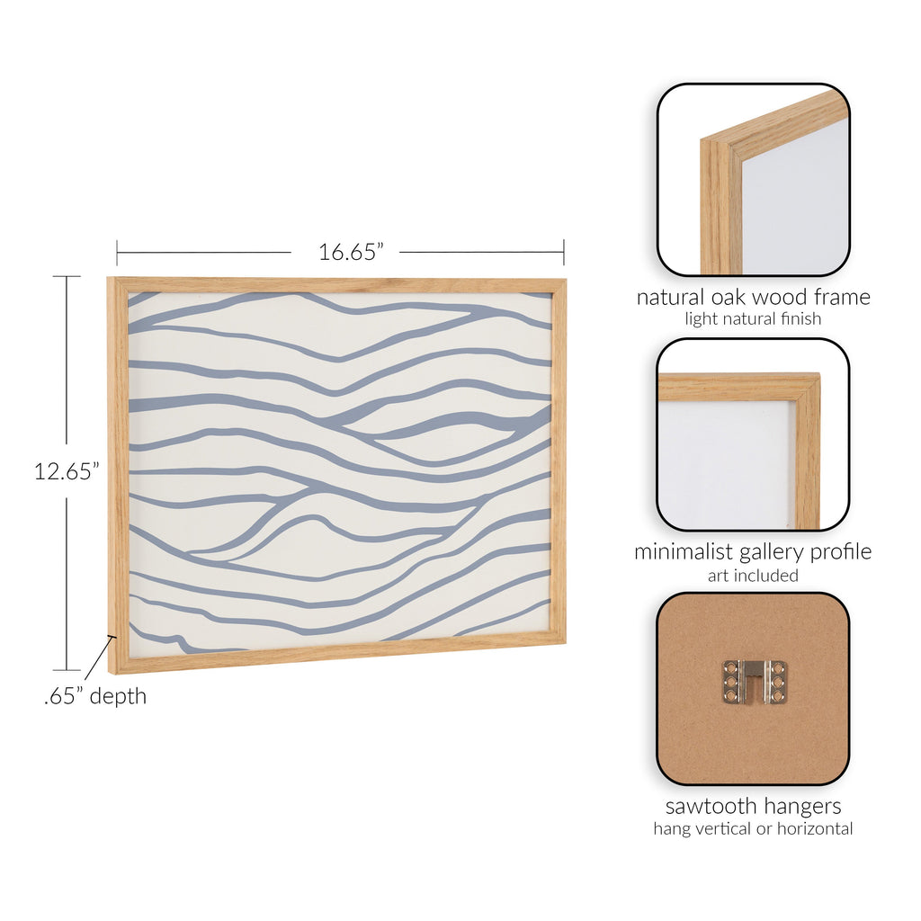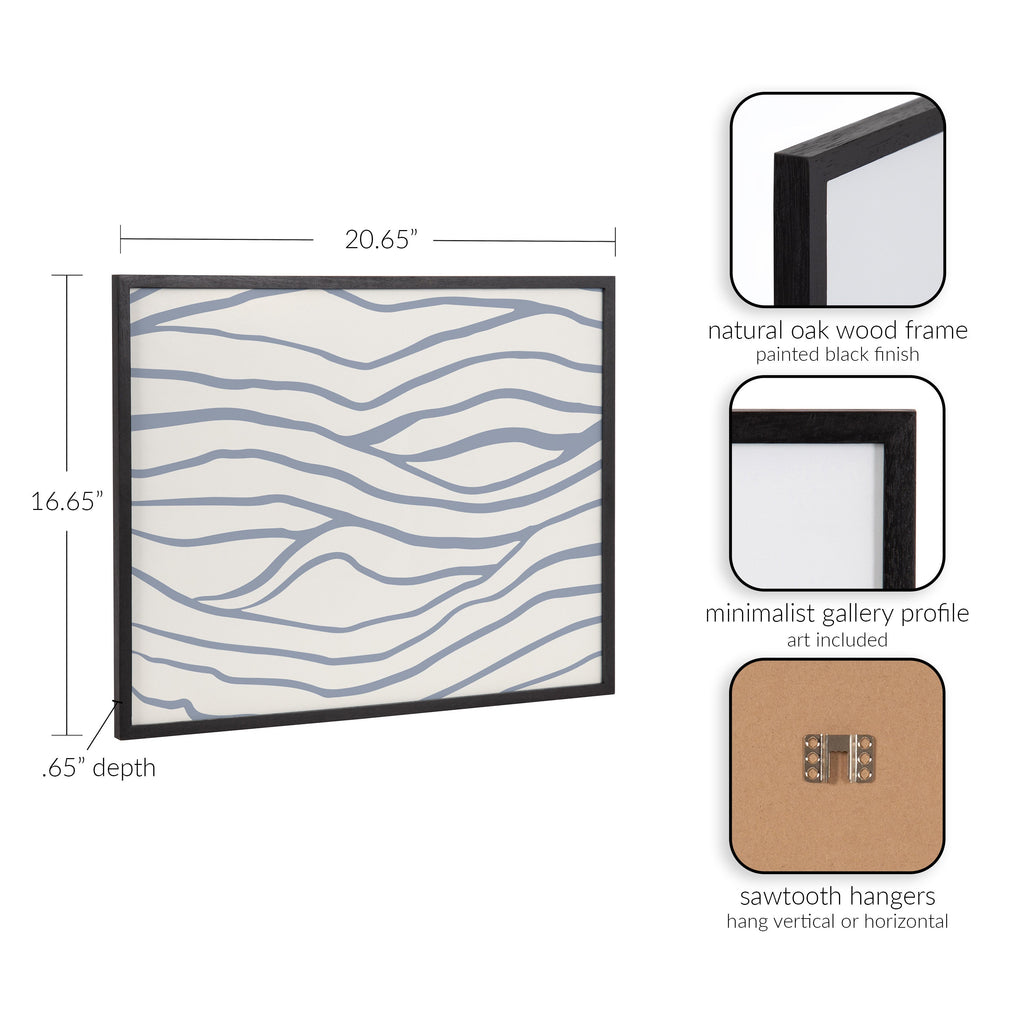 This simple yet elegant artwork features abstract coastal waves. Printed in the USA in Waunakee, Wisconsin, this modern framed wall art is sure to bring joy to your space. Our design team curates art that will fit perfectly in any room of your home. Printed on semi-gloss paper made of responsibly sourced wood fibers and framed with a simple solid wood gallery frame, this wall art is easy to display on the wall and will match any décor style. Showcase this curated art in your living room, bedroom, home office, kitchen, bathroom, nursery, or anywhere you want to bring a little beauty and charm to your walls. Specializing in home décor, we are continually bringing timeless works of art for the traditional decorator as well as trend-forward pieces for that eclectic art lover. Our high-quality framed wall art also makes excellent gifts for birthdays, holidays, or housewarming parties.