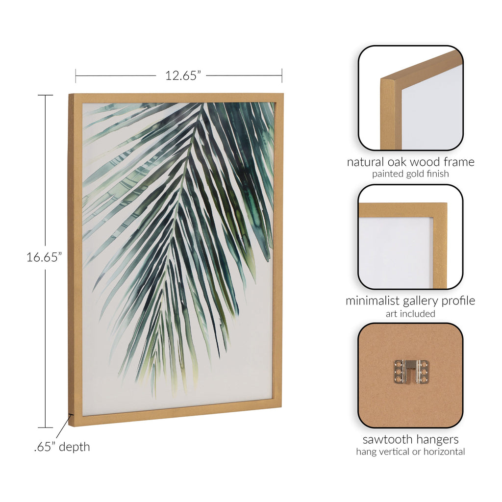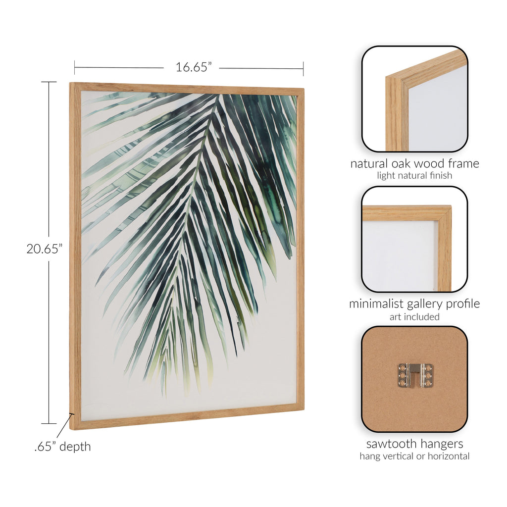 Featuring soft, delicate palm fronds, this botanical piece brings a modern tropical vibe to any space. Printed in the USA in Waunakee, Wisconsin, this modern framed wall art is sure to bring joy to your space. Our design team curates art that will fit perfectly in any room of your home. Printed on semi-gloss paper made of responsibly sourced wood fibers and framed with a simple solid wood gallery frame, this wall art is easy to display on the wall and will match any décor style. Showcase this curated art in your living room, bedroom, home office, kitchen, bathroom, nursery, or anywhere you want to bring a little beauty and charm to your walls. Specializing in home décor, we are continually bringing timeless works of art for the traditional decorator as well as trend-forward pieces for that eclectic art lover. Our high-quality framed wall art also makes excellent gifts for birthdays, holidays, or housewarming parties.