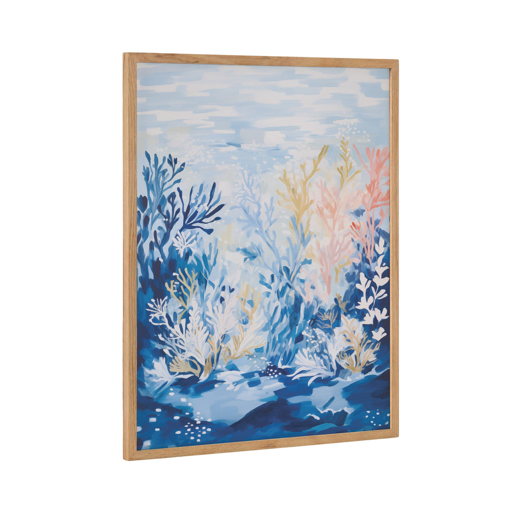 This underwater ocean landscape showcases a stunning tropical coral reef. Printed in the USA in Waunakee, Wisconsin, this modern framed wall art is sure to bring joy to your space. Our design team curates art that will fit perfectly in any room of your home. Printed on semi-gloss paper made of responsibly sourced wood fibers and framed with a simple solid wood gallery frame, this wall art is easy to display on the wall and will match any décor style. Showcase this curated art in your living room, bedroom, home office, kitchen, bathroom, nursery, or anywhere you want to bring a little beauty and charm to your walls. Specializing in home décor, we are continually bringing timeless works of art for the traditional decorator as well as trend-forward pieces for that eclectic art lover. Our high-quality framed wall art also makes excellent gifts for birthdays, holidays, or housewarming parties.