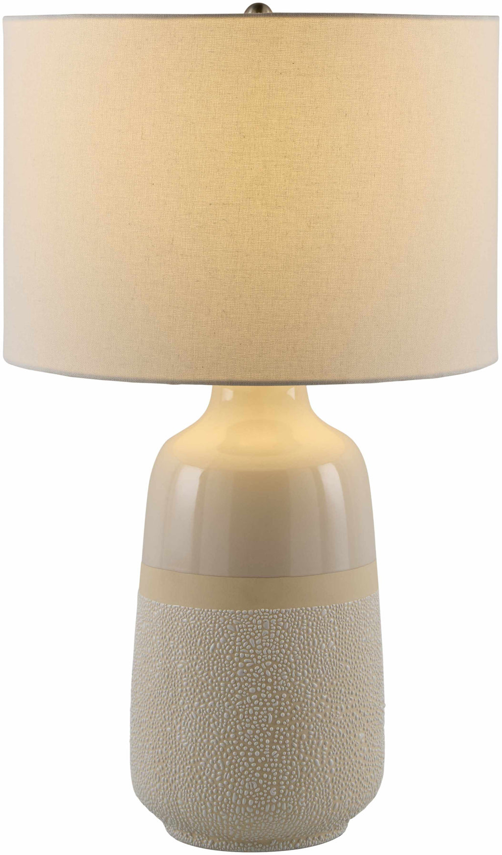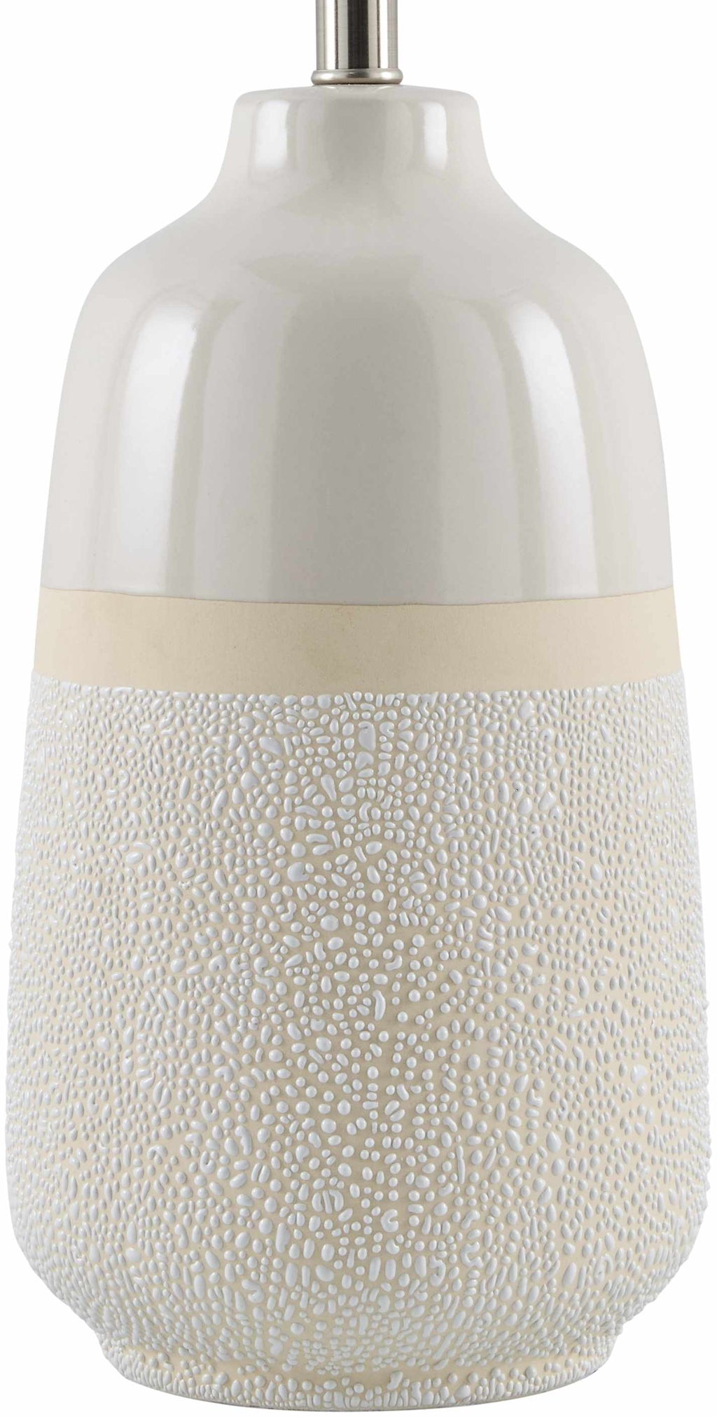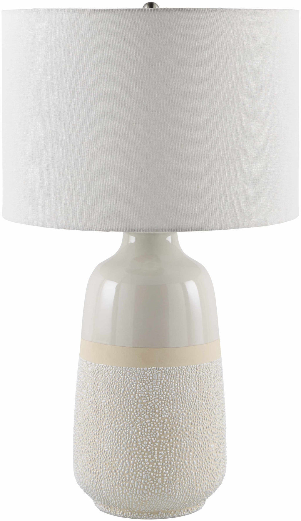 Material: Body: Ceramic / Shade (Outside): Linen / Shade (Inside): Plastic / Finial: Iron |