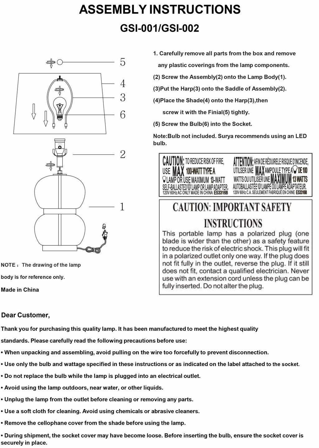 Material: Body: Glass / Base: Iron / Shade (Outside): Linen / Shade (Inside): Polyester / Finial: Iron |