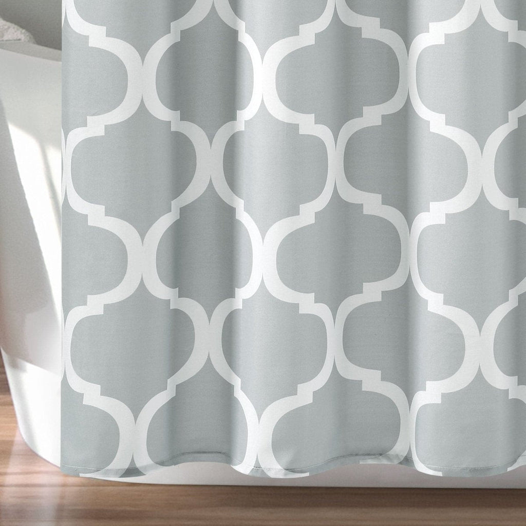 Chic and versatile, this stylish Geo Shower Curtain features all over Trellis pattern, offering a trendy look for your bathroom.