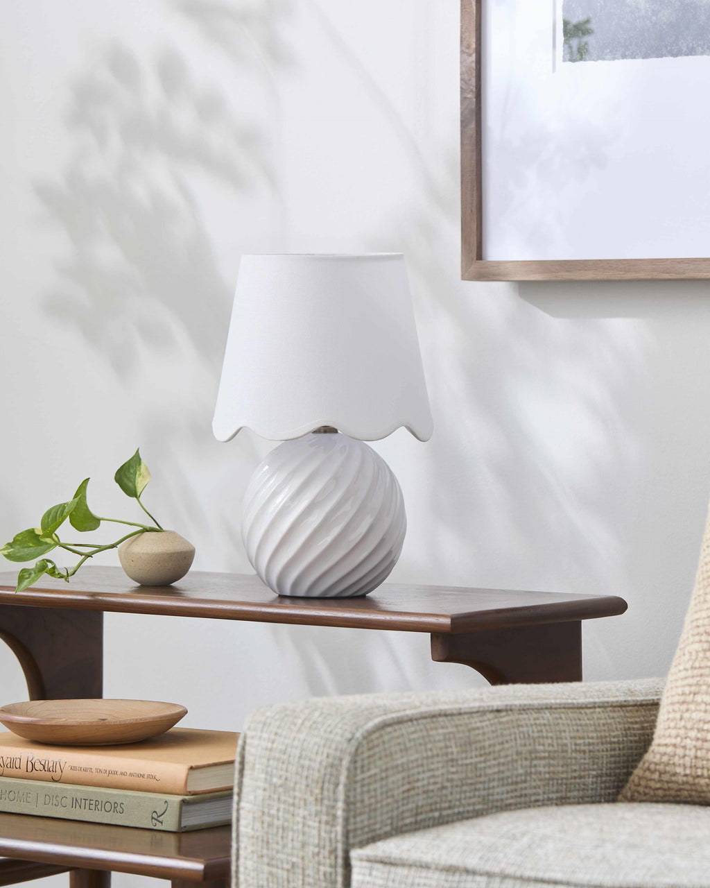 Material: Body: Ceramic / Shade (Outside): Linen / Shade (Inside): , Polystyrene |