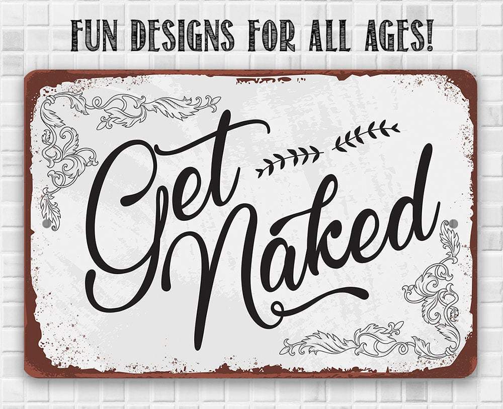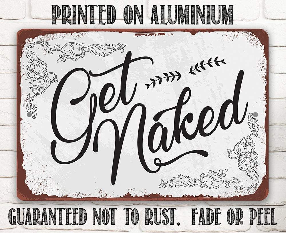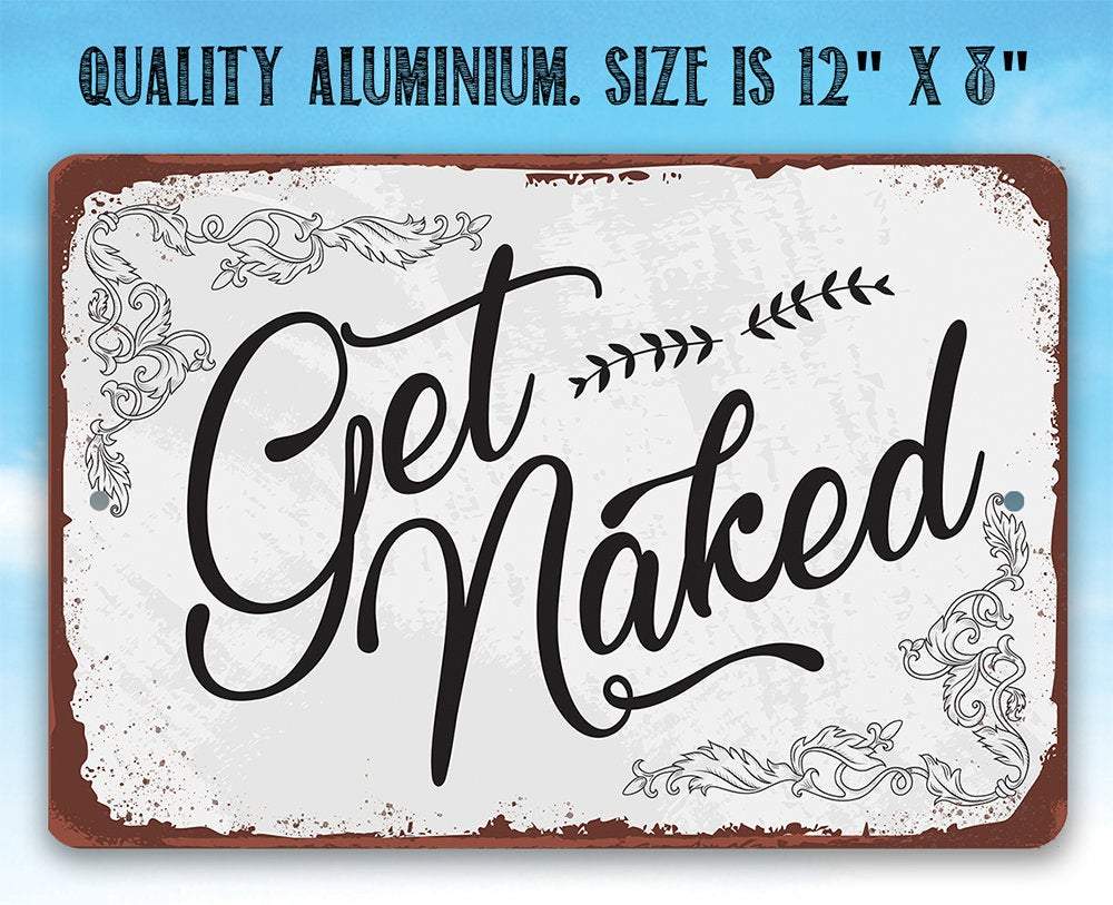 Get Naked - Durable Metal Sign - 8" x 12" or 12" x 18" Indoor/Outdoor - Decor for Bathroom and Bedroom